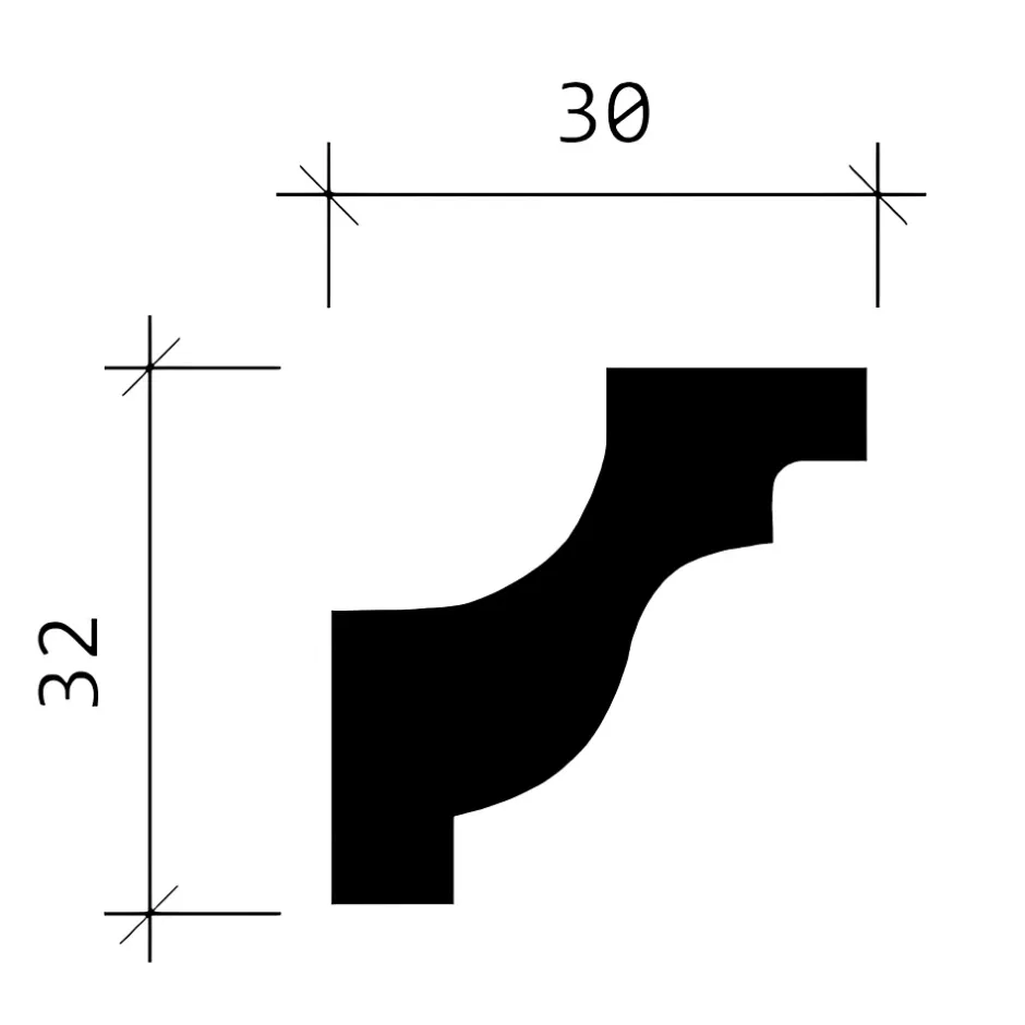- Corniche, dimensions: 200 cm x 3 cm x 3,2 cm. La surface est prétraité