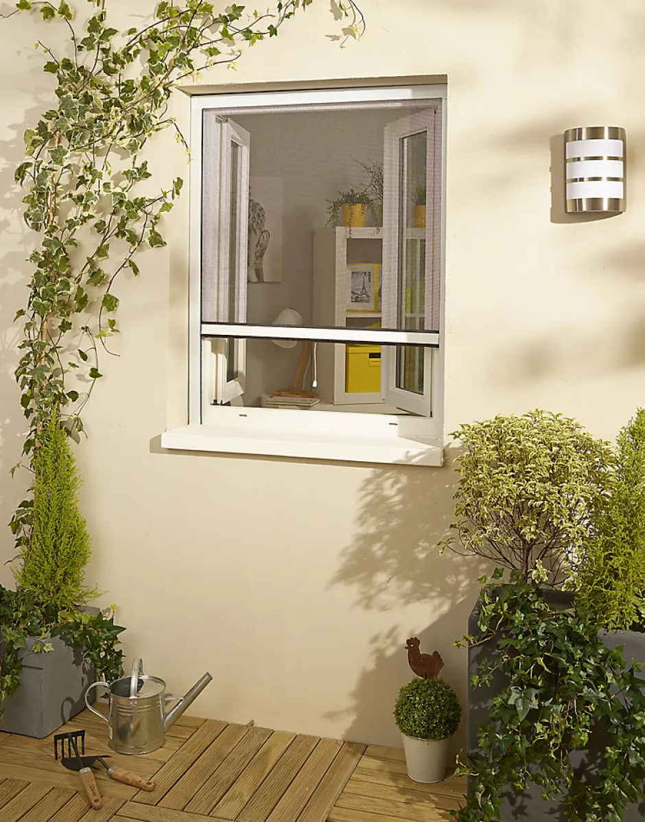La moustiquaire enroulable PVC à ressort de la marque Protecta s’ajuste à la façon d’un store enrouleur traditionnel. Grâce aux poignées incurvées, il vous sera facile de descendre et monter votre moustiquaire en un seul geste. La moustiquaire se pose simplement dans le tableau extérieur de la fenêtre. Ossature robuste en aluminium. Des poignées incurvées, un coffre et des coulisses laqués blanc pour un rendu et une durabilité exceptionnels. Des joints brosse font partie des coulisses et travers pour une herméticité parfaite. La toile de cette moustiquaire enroulable est conçue en fibre de verre grise. Résistante aux U.V., aux accrochages ou aux griffes de chat, c’est une toile robuste parfaite pour les aléas du quotidien. La toile est ignifugée, souple et laisse passer la lumière et l’air. La toile n’est en aucun cas enduite d’insecticides, la protection provient uniquement du tulle. Côté entretien, une simple éponge savonnée suffit à nettoyer facilement votre moustiquaire pour fenêtre. La moustiquaire enroulable est facilement recoupable en largeur et en hauteur à l’aide d’une scie à métaux. Largeur minimum de recoupe : 60cm de largeur sur le produit fini. Pour une recoupe de la hauteur, seule une recoupe des profils latéraux est nécessaire. La recoupe du tissu est inutile, le tissu excédant restant simplement enroulé sur son tube. Dimensions du coffre : Profondeur : 43mm – Hauteur : 48mm. Dimensions des profils latéraux : Largeur : 32mm – Profondeur : 21mm. Important : La hauteur totale de la moustiquaire totalement ouverte est de 9cm
