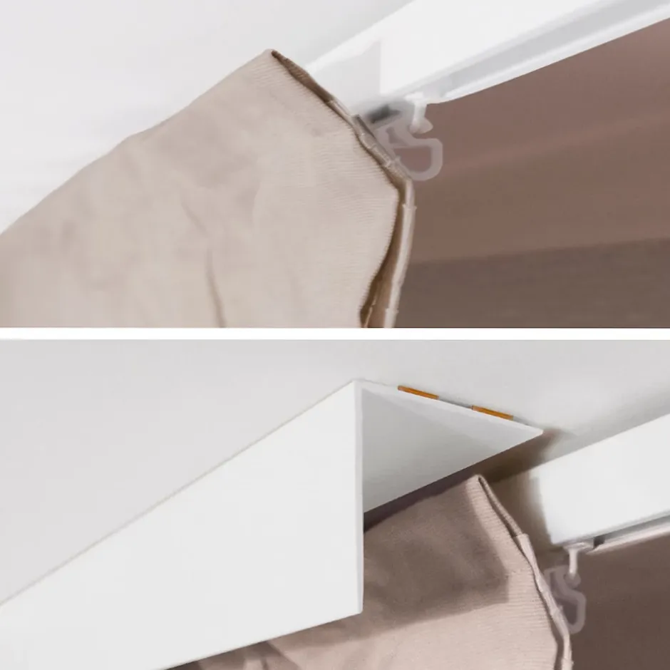 - Design Moderne – Une forme élégante et minimaliste qui s’intègre parfaitement aux intérieurs contemporains, tout en dissimulant les tringles et rails de plafond.