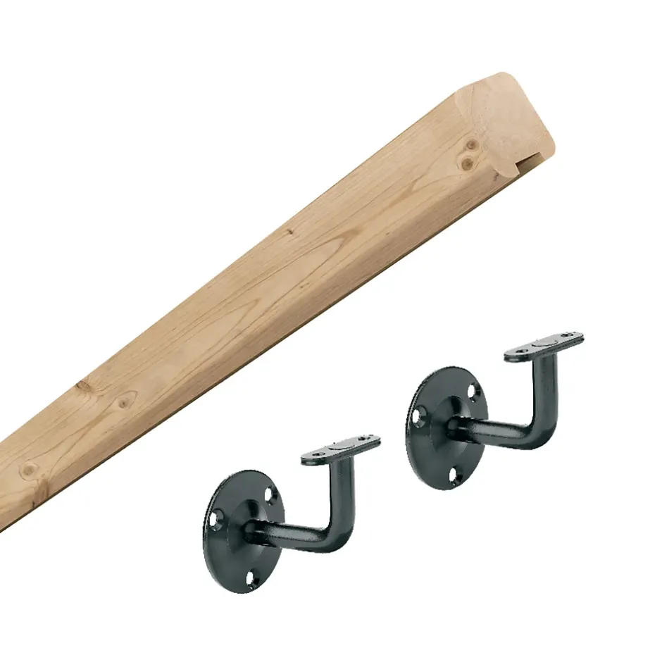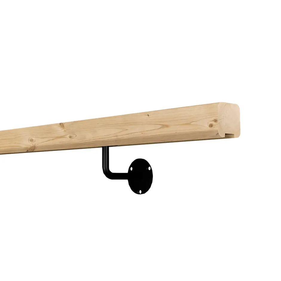 Pack main courante 2ml en sapin naturel avec 2 supports muraux noir en acier thermolaqué. Bois d’origine européenne, peut être peint ou verni. La main courante est recoupable en longuer. Utilisation uniquement pour l’intérieur. Dimensions: L 2m x H 4,5 cm x l 4,5 cm. Le produit est vendu en bois brut, conforme à la norme PEFC (le produit est issu de sources responsables et le consommateur à travers son acte d’achat, il contribue à la gestion durable des forêts). Fixations murales (vis) non incluses. Ce produit est garanti 15 ans