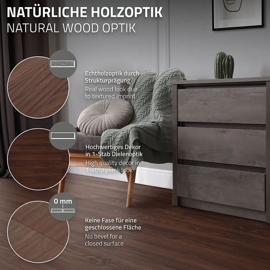 Découvrez la révolution en matière de revêtement de sol : notre vinyle adhésif aux motifs de bois rouge-brun foncé allie style, simplicité et fonctionnalité en un seul paquet ! Un paquet contient 16 planches, suffisant pour une surface généreuse de 2,23 m².Caractéristiques du produit:Résistant à l’eau : notre revêtement de sol ne résiste pas seulement à l’usage quotidien, mais aussi à l’humidité. Profitez de la tranquillité d’esprit que procure un sol résistant à l’eau, idéal pour les cuisines, les salles de bains et autres environnements humides.Facile à installer : fini les installations compliquées ! Notre vinyle adhésif est très facile à coller. Grâce à la facilité d’installation, vous pouvez transformer votre pièce en un clin d’œil, sans avoir besoin de l’aide d’un professionnel.16 pièces par paquet : chaque paquet contient 16 planches, ce qui est suffisant pour couvrir une surface de 2,23 m². Caractéristiques:Revêtement de sol PVC vinyle autocollant de luxeClasse de pollution E1 – la plus faible émission de substances nocivesAntidérapant selon le niveau DS2 mm d’épaisseurRésistant à l’eau – ne s’éponge pasLongue durée de vie et peu d’usureCompatible avec les pièces humidesFacile à entretenir et résistant à l’abrasionHautement inflammableInstallation facile et rapideVinyle de sol moderne pour presque toutes les piècesConvient aux pièces à forte fréquentationRésistant aux moisissures, antiallergique, antistatique, etc.Isolant thermique et insonorisantRésistant et antidérapantFacile à poser et à entretenirIdéal pour tous les types de surfaces solides et planes Livraison:5 x Revêtement de sol vinyle adhésif ( 80 pièces = 11,15 m² ) Information technique:Matériau : PVCCouleur : rouge-marronMotif bois : noyerPoids : 8,8 kg/cartonDimensions par planche (Lxl) : 91,5 cm x 15,3 cmÉpaisseur : 2 mmContenu : 16 pièces/cartonSurface totale : 11,15 m²Système de pose : sol vinyle adhésifLongueur : 91,5 cmLargeur : 15,3 cm