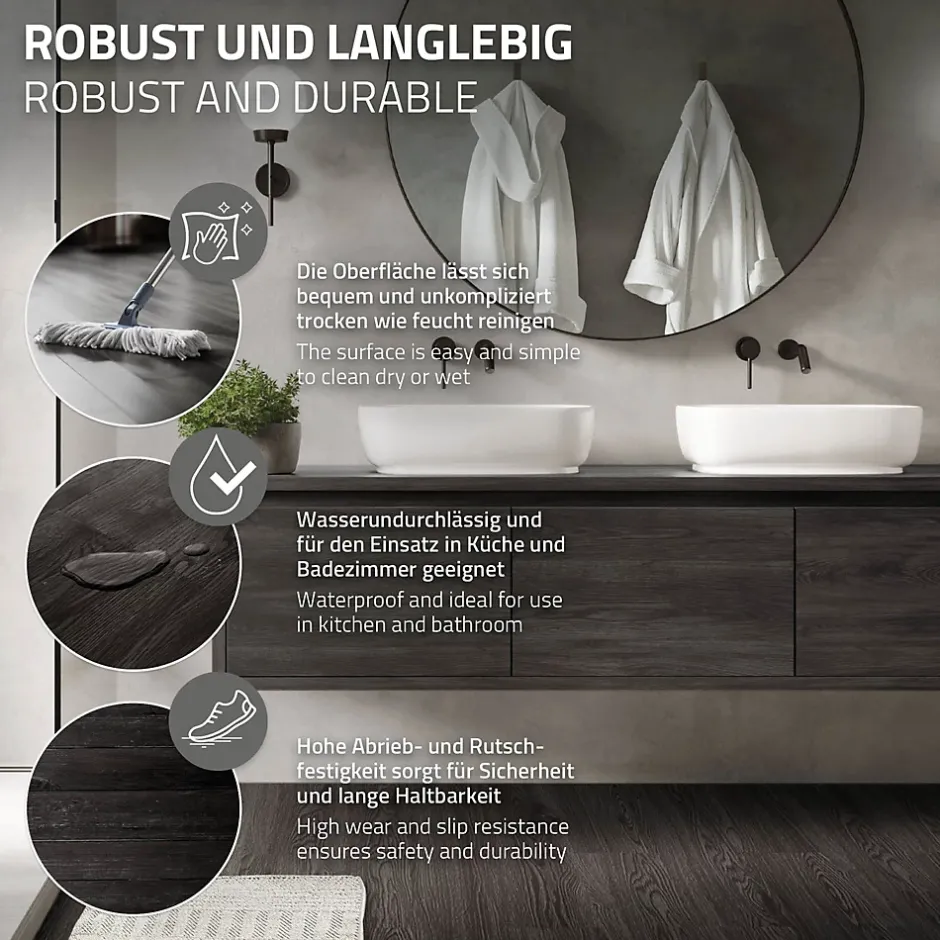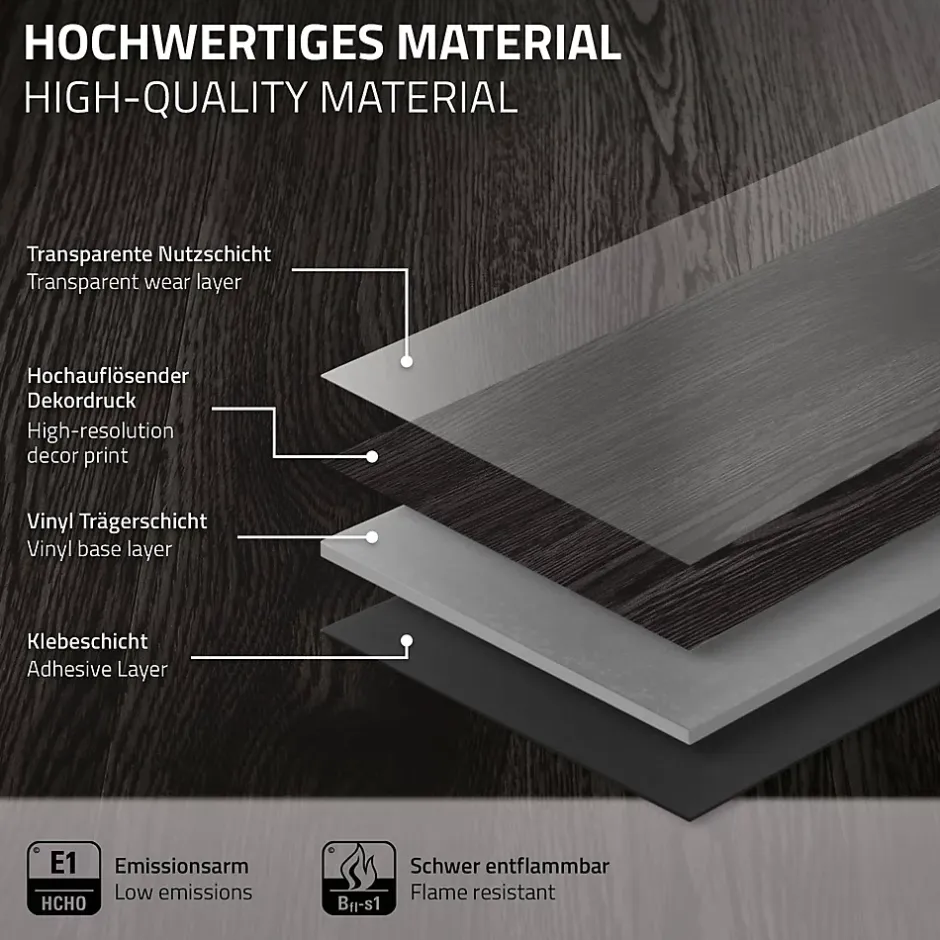 Découvrez la révolution en matière de revêtement de sol : notre vinyle adhésif à motif bois de chêne gris foncé allie style, simplicité et fonctionnalité en un seul paquet ! Un paquet contient 16 planches, suffisant pour une surface généreuse de 2,23 m².Caractéristiques du produit:Résistant à l’eau : notre revêtement de sol ne résiste pas seulement à l’usage quotidien, mais aussi à l’humidité. Profitez de la tranquillité d’esprit que procure un sol résistant à l’eau, idéal pour les cuisines, les salles de bains et autres environnements humides.Facile à installer : fini les installations compliquées ! Notre revêtement de sol vinyle adhésif est très facile à coller. Grâce à la facilité d’installation, vous pouvez transformer votre pièce en un clin d’œil, sans avoir besoin de l’aide d’un professionnel.16 pièces par paquet : chaque paquet contient 16 planches, ce qui est suffisant pour couvrir une surface de 2,23 m². Caractéristiques:Revêtement de sol PVC vinyle autocollant de luxe en chêneClasse de pollution E1 – la plus faible émission de substances nocivesAntidérapant selon le niveau DS2 mm d’épaisseurRésistant à l’eau – ne s’éponge pasLongue durée de vie et peu d’usureCompatible avec les pièces humidesFacile à entretenir et résistant à l’abrasionHautement inflammableInstallation facile et rapideVinyle de sol moderne pour presque toutes les piècesConvient aux pièces à forte fréquentationRésistant aux moisissures, antiallergique, antistatique, etc.Isolant thermique et insonorisantRésistant et antidérapantIdéal pour tous les types de surfaces solides et planes Livraison:1 x Revêtement de sol vinyle adhésif ( 16 pièces = 2,23 m² ) Information technique:Matériau : PVCCouleur : gris foncéMotif bois : chênePoids : 8,8 kg/cartonDimensions par planche (Lxl) : 91,5 cm x 15,3 cmÉpaisseur : 2 mmContenu : 16 pièces/cartonSurface totale : 2,23 m²Système de pose : sol vinyle adhésifLongueur : 91,5 cmLargeur : 15,3 cm