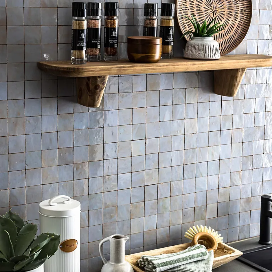 – DESCRIPTION -Cette mosaïque de Carrelage Zellige Marocain s’intégrera à la perfection dans vos aménagements de cuisine ou de salle de bains.Matière : Terre cuite émailléeCouleur : Bleu GustavienFormat des carreaux : 5×5 cm Format de la plaque : 30×30 cm Epaisseur : 1 cm Finition : Taillé mainOrigine : MarocUtilisation : Intérieur (Mur) Conditionnement : plaques de 30×30 cm soit 0,09 m²- INFORMATIONS -> Du fait de sa fabrication manuelle et artisanale, le zellige est par essence un revêtement imparfait. Les authentiques carreaux de zelliges marocains sont moulés, taillés et émaillés exclusivement à la main selon des méthodes traditionnelles ancestrales. Ces carreaux sont caractérisés par leurs irrégularités et leurs imperfections.Ces particularités purement esthétiques n’altèrent en rien les caractéristiques techniques des produits.En voici une liste non exhaustive :- Eclats sur l’émail ou dans les coins,- Bosses et irrégularités de planéité,- Creux ou trous pouvant laisser apparaitre l’argile,- Craquelures sur la surface de l’émail,- Révélation de l’argile à travers l’émail,- Variations de couleurs, de nuances et de tons,- Variations d’épaisseurs et de dimensions,- Sur trame : irrégularités d’espacements entre les pièces.> Si vous souhaitez un carrelage parfait : alors n’achetez pas de zellige authentique mais reportez vous sur de la céramique industrielle imitation zellige.> Nos photos sont réalisées par des professionnels avec l’objectif de représenter les produits de la façon la plus fidèle possible. Cependant, en fonction de votre écran et des paramètres appliqués, l’aspect et les couleurs du produit sur votre écran peuvent légèrement différer du produit original.- LIVRAISON -Forfait frais de port : tarif unique, sans limite de quantité.
