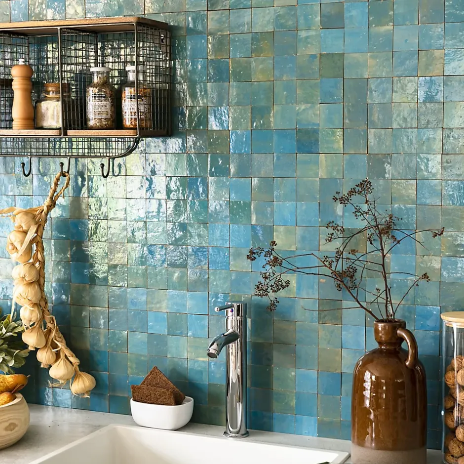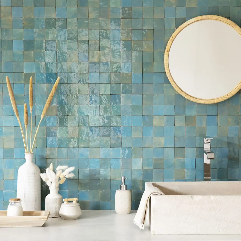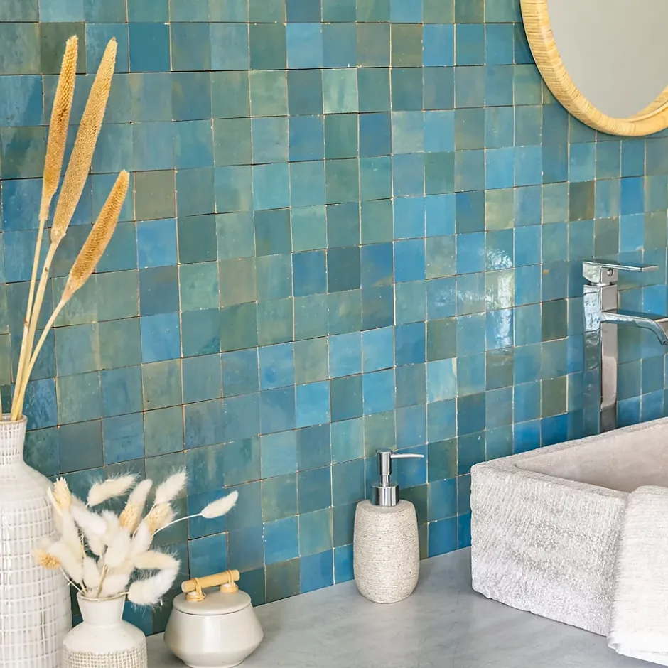 Découvrez notre Carrelage Zellige Marocain Bleu Lazuli 5×5 cm (vendu par plaque de 30×30 cm soit 0,09 m²) – INFORMATIONS -> Ce produit est en Terre cuite. Comme tous les matériaux naturels, des variations sont possibles entre les produits présentés et ceux livrés ainsi qu’entre les produits livrés eux-mêmes. De manière non limitative, ces variations peuvent porter sur la couleur, le veinage, l’aspect, la dimension, l’épaisseur, et autres défauts purement esthétiques qui n’altèrent en rien les caractéristiques techniques des produits.> Ce produit est destiné exclusivement à un usage mural. Tout usage en plan de travail, en table ou en surface en contact avec des aliments est interdite.> Nos photos sont réalisées par des professionnels avec l’objectif de représenter les produits de la façon la plus fidèle possible. Cependant, en fonction de votre écran et des paramètres appliqués, l’aspect et les couleurs du produit sur votre écran peuvent légèrement différer du produit original.