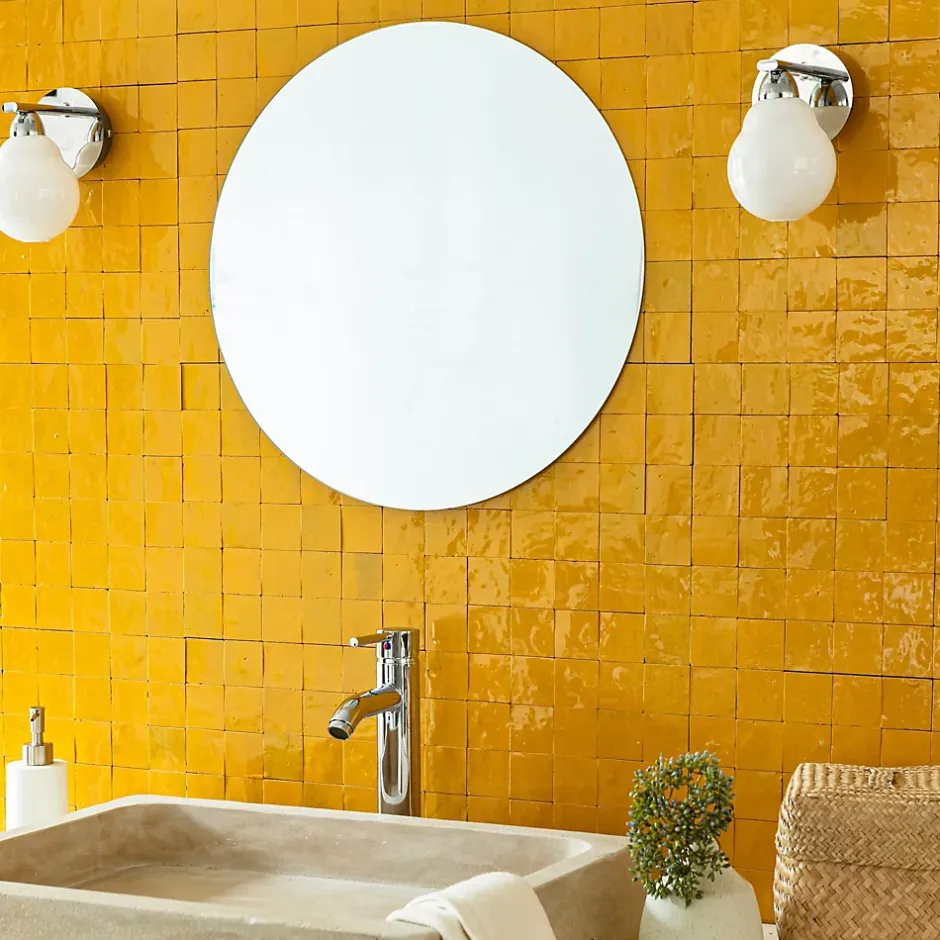 – DESCRIPTION -Cette mosaïque de Carrelage Zellige Marocain s’intégrera à la perfection dans vos aménagements de cuisine ou de salle de bains.Matière : Terre cuite émailléeCouleur : Jaune MoutardeFormat des carreaux : 5×5 cm Format de la plaque : 30×30 cm Epaisseur : 1 cm Finition : Taillé mainOrigine : MarocUtilisation : Intérieur (Mur) Conditionnement : plaques de 30×30 cm soit 0,09 m²- INFORMATIONS -> Du fait de sa fabrication manuelle et artisanale, le zellige est par essence un revêtement imparfait. Les authentiques carreaux de zelliges marocains sont moulés, taillés et émaillés exclusivement à la main selon des méthodes traditionnelles ancestrales. Ces carreaux sont caractérisés par leurs irrégularités et leurs imperfections.Ces particularités purement esthétiques n’altèrent en rien les caractéristiques techniques des produits.En voici une liste non exhaustive :- Eclats sur l’émail ou dans les coins,- Bosses et irrégularités de planéité,- Creux ou trous pouvant laisser apparaitre l’argile,- Craquelures sur la surface de l’émail,- Révélation de l’argile à travers l’émail,- Variations de couleurs, de nuances et de tons,- Variations d’épaisseurs et de dimensions,- Sur trame : irrégularités d’espacements entre les pièces.> Si vous souhaitez un carrelage parfait : alors n’achetez pas de zellige authentique mais reportez vous sur de la céramique industrielle imitation zellige.> Nos photos sont réalisées par des professionnels avec l’objectif de représenter les produits de la façon la plus fidèle possible. Cependant, en fonction de votre écran et des paramètres appliqués, l’aspect et les couleurs du produit sur votre écran peuvent légèrement différer du produit original.- LIVRAISON -Forfait frais de port : tarif unique, sans limite de quantité.