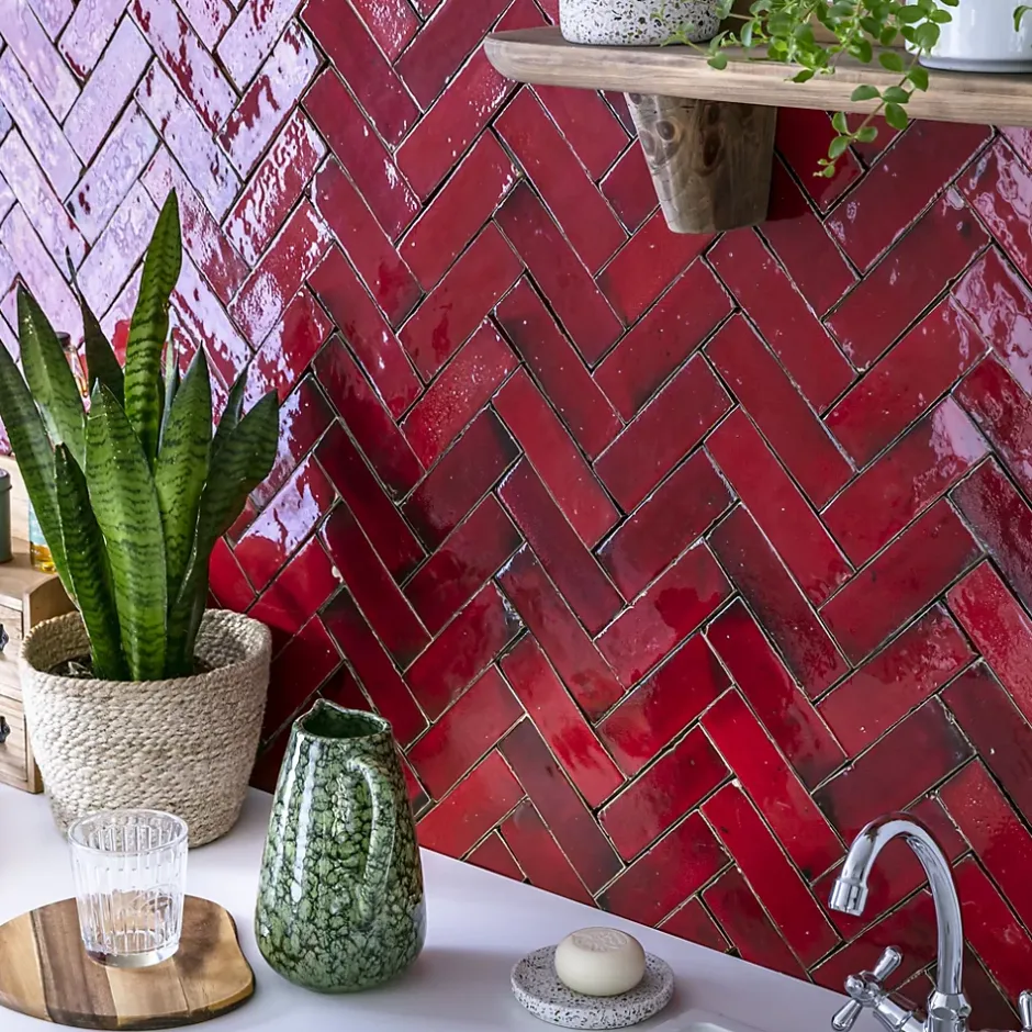 – DESCRIPTION -Ce Carrelage Zellige Marocain est d’une couleur rouge pétillant qui s’intégrera à la perfection dans vos aménagements de cuisine ou de salle de bains.Matière : Terre cuite émailléeCouleur : Rouge PétillantFormat : 5×15 cmEpaisseur : 1,2 cm Finition : BrutOrigine : MarocUtilisation : Intérieur (Sol et Mur) Conditionnement : boîtes de 1 m²- INFORMATIONS -> Du fait de sa fabrication manuelle et artisanale, le zellige est par essence un revêtement imparfait. Les authentiques carreaux de zelliges marocains sont moulés, taillés et émaillés exclusivement à la main selon des méthodes traditionnelles ancestrales. Ces carreaux sont caractérisés par leurs irrégularités et leurs imperfections.Ces particularités purement esthétiques n’altèrent en rien les caractéristiques techniques des produits.En voici une liste non exhaustive :- Eclats sur l’émail ou dans les coins,- Bosses et irrégularités de planéité,- Creux ou trous pouvant laisser apparaitre l’argile,- Craquelures sur la surface de l’émail,- Révélation de l’argile à travers l’émail,- Variations de couleurs, de nuances et de tons,- Variations d’épaisseurs et de dimensions,- Sur trame : irrégularités d’espacements entre les pièces.> Si vous souhaitez un carrelage parfait : alors n’achetez pas de zellige authentique mais reportez vous sur de la céramique industrielle imitation zellige.> Nos photos sont réalisées par des professionnels avec l’objectif de représenter les produits de la façon la plus fidèle possible. Cependant, en fonction de votre écran et des paramètres appliqués, l’aspect et les couleurs du produit sur votre écran peuvent légèrement différer du produit original.- LIVRAISON -Forfait frais de port : tarif unique, sans limite de quantité. Avant votre commande Assurez-vous que l’ad