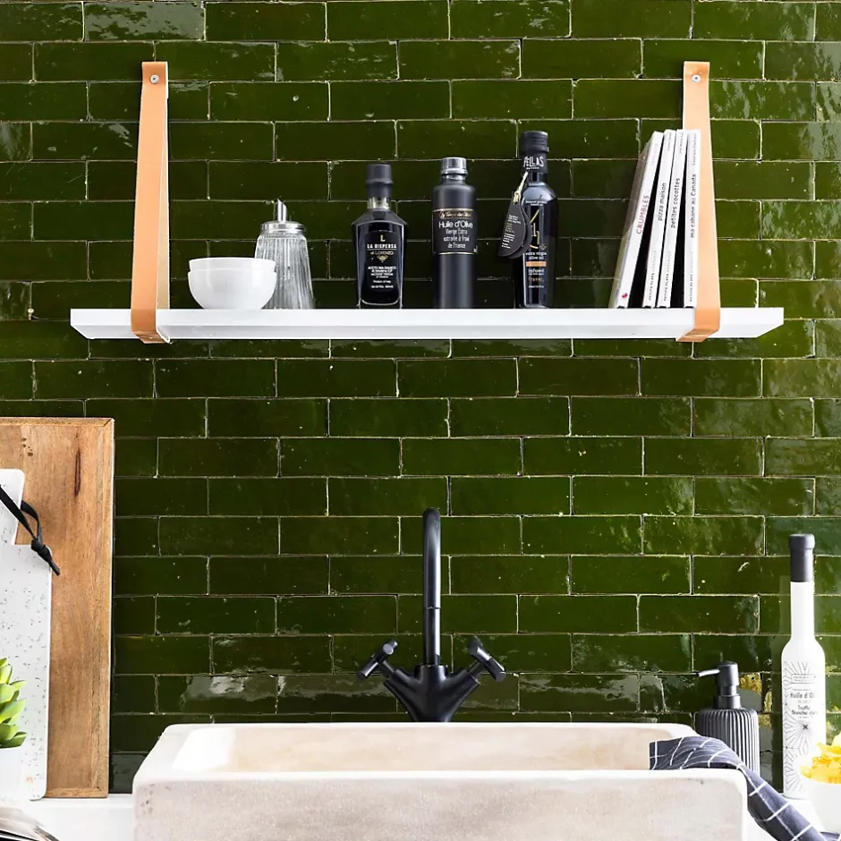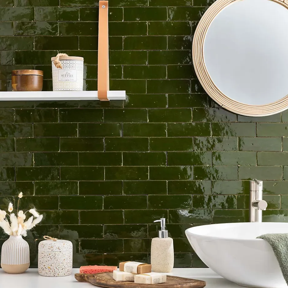– DESCRIPTION -Ce Carrelage Zellige Marocain s’intégrera à la perfection dans vos aménagements de cuisine ou de salle de bains.Matière : Terre cuite émailléeCouleur : Vert ImpérialFormat : 5×15 cmEpaisseur : 1,2 cm Finition : BrutOrigine : MarocUtilisation : Intérieur (Sol et Mur) Conditionnement : boîtes de 1 m²- INFORMATIONS -> Du fait de sa fabrication manuelle et artisanale, le zellige est par essence un revêtement imparfait. Les authentiques carreaux de zelliges marocains sont moulés, taillés et émaillés exclusivement à la main selon des méthodes traditionnelles ancestrales. Ces carreaux sont caractérisés par leurs irrégularités et leurs imperfections.Ces particularités purement esthétiques n’altèrent en rien les caractéristiques techniques des produits.En voici une liste non exhaustive :- Eclats sur l’émail ou dans les coins,- Bosses et irrégularités de planéité,- Creux ou trous pouvant laisser apparaitre l’argile,- Craquelures sur la surface de l’émail,- Révélation de l’argile à travers l’émail,- Variations de couleurs, de nuances et de tons,- Variations d’épaisseurs et de dimensions,- Sur trame : irrégularités d’espacements entre les pièces.> Si vous souhaitez un carrelage parfait : alors n’achetez pas de zellige authentique mais reportez vous sur de la céramique industrielle imitation zellige.> Nos photos sont réalisées par des professionnels avec l’objectif de représenter les produits de la façon la plus fidèle possible. Cependant, en fonction de votre écran et des paramètres appliqués, l’aspect et les couleurs du produit sur votre écran peuvent légèrement différer du produit original.- LIVRAISON -Forfait frais de port : tarif unique, sans limite de quantité. Avant votre commande Assurez-vous que l’adresse de livraison est accessible pour u