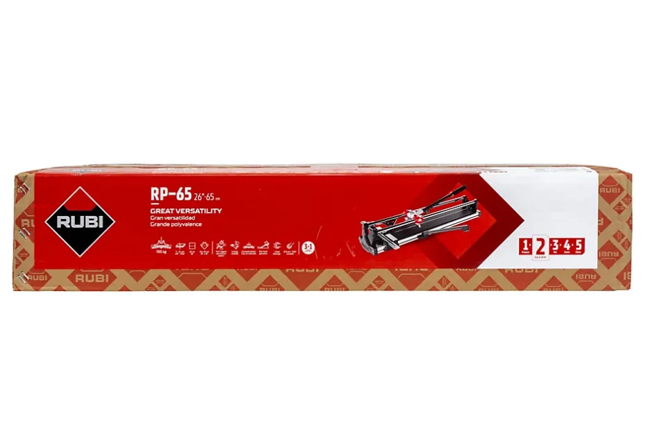 Coupe carreaux professionnel à double guide avec séparateur multipoint et équerre fixe. Léger, robuste et résolument fonctionnel, le coupe-carreau manuel RUBI RP incarne l’équilibre parfait entre innovation, ergonomie et puissance. Conçu pour répondre aux exigences du carreleur professionnel, il transforme chaque coupe en un geste précis, rapide et maîtrisé. Grâce à son coulisseau à roulement linéaire, le coupe-carreau offre un déplacement fluide et ultra-précis. Son double guide en acier chromé et rectifié de Ø 20 mm garantit une stabilité exceptionnelle et une qualité de coupe irréprochable, même en usage intensif. Le système exclusif RUBI MAGNET permet une utilisation à une main, augmentant considérablement la vitesse d’exécution et le confort de travail. Associé à une conception optimisée du séparateur, il offre une visibilité totale lors du marquage et de la séparation, un avantage unique sur le marché. La base en aluminium extrudé assure à la fois légèreté et rigidité au coupe-carreau RP. Résultat : une puissance de séparation maximale allant jusqu’à 700 kg, idéale pour la coupe fréquente de grès cérame et le grès émaillé.