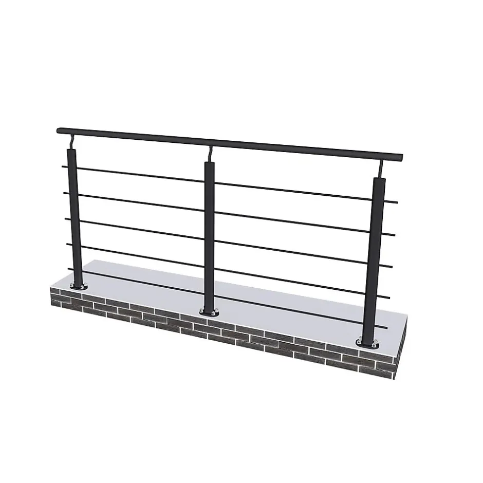 Garde-corps en kit avec main courante et 5 traverses – Aluminium anticorrosion, facile à poser en intérieur ou extérieurComposition du kit :1 passe-main de 2 m5 barreaux de 2 m3 poteaux à fixation à platVisserie et accessoires pour fixation murale, avec bouchons inclusPoints forts :**Matériau premium :** Fabriqué principalement en aluminium de haute qualité, ce garde-corps est résistant à la corrosion, adapté pour une pose en intérieur ou en extérieur.**Sécurité optimale :** La rigidité de l’aluminium offre une excellente sécurité pour vos balcons, escaliers ou mezzanines.**Léger et maniable :** Malgré sa solidité, l’aluminium est léger, facilitant la manipulation et l’installation.**Flexibilité de pose :** La conception modulable permet :De régler la distance entre les poteaux selon vos besoinsUne installation sur des escaliers grâce à une main courante et des traverses inclinées, avec supports mobiles et anneaux réglablesDe couper la main courante et les traverses pour ajuster le kit à votre configuration**Installation simplifiée :** Le système de pose est accessible à tous, avec une notice claire et précise.**Personnalisation :** En cas de besoin, vous pouvez commander des poteaux supplémentaires pour compléter votre structure.Vous pouvez également commander le kit de coudes mobiles réglables pour garde-corpsafin de relier deux tronçons adjacentsDimensions :Longueur du passe mains et des traverses : 2 mHauteur réglable : 100,5 cm à 106,5 cmDistance maximale entre les traverses : 16 cmCouleurs disponibles :NM : Noir matGM : Gris mat
