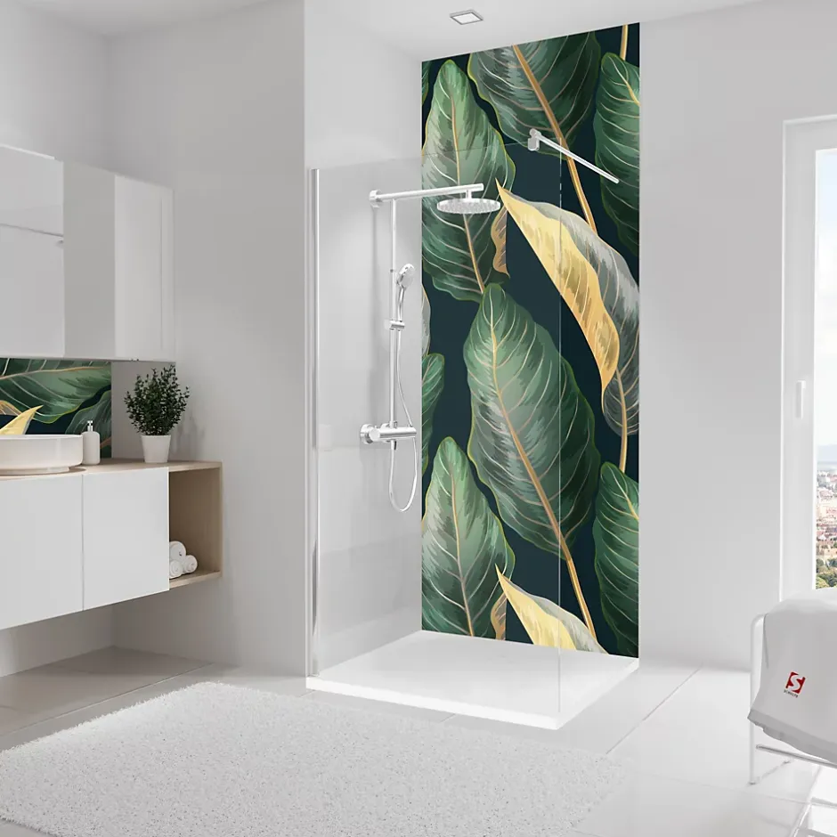 Panneau mural de salle de bains l.100 x H.255 cm, motifs feuilles bananier, Schulte DecoDesign