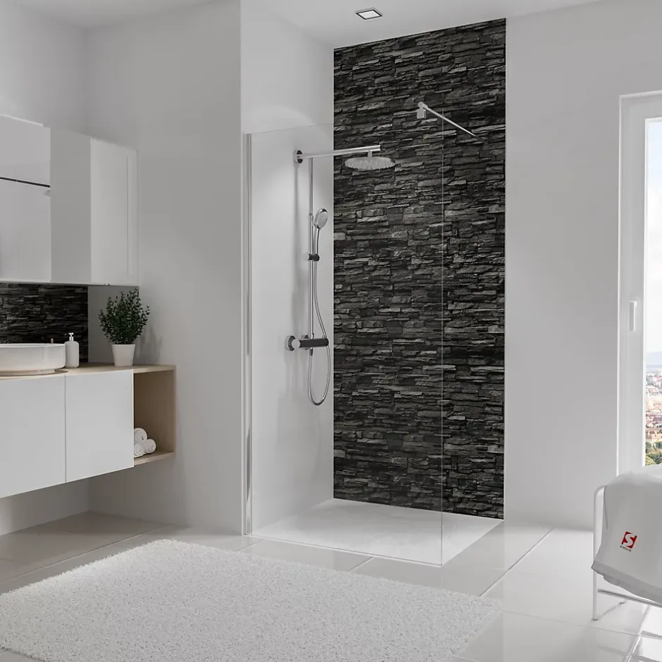 Panneau mural de salle de bains l.100×255 cm, décor parement ardoise, Schulte DécoDesign