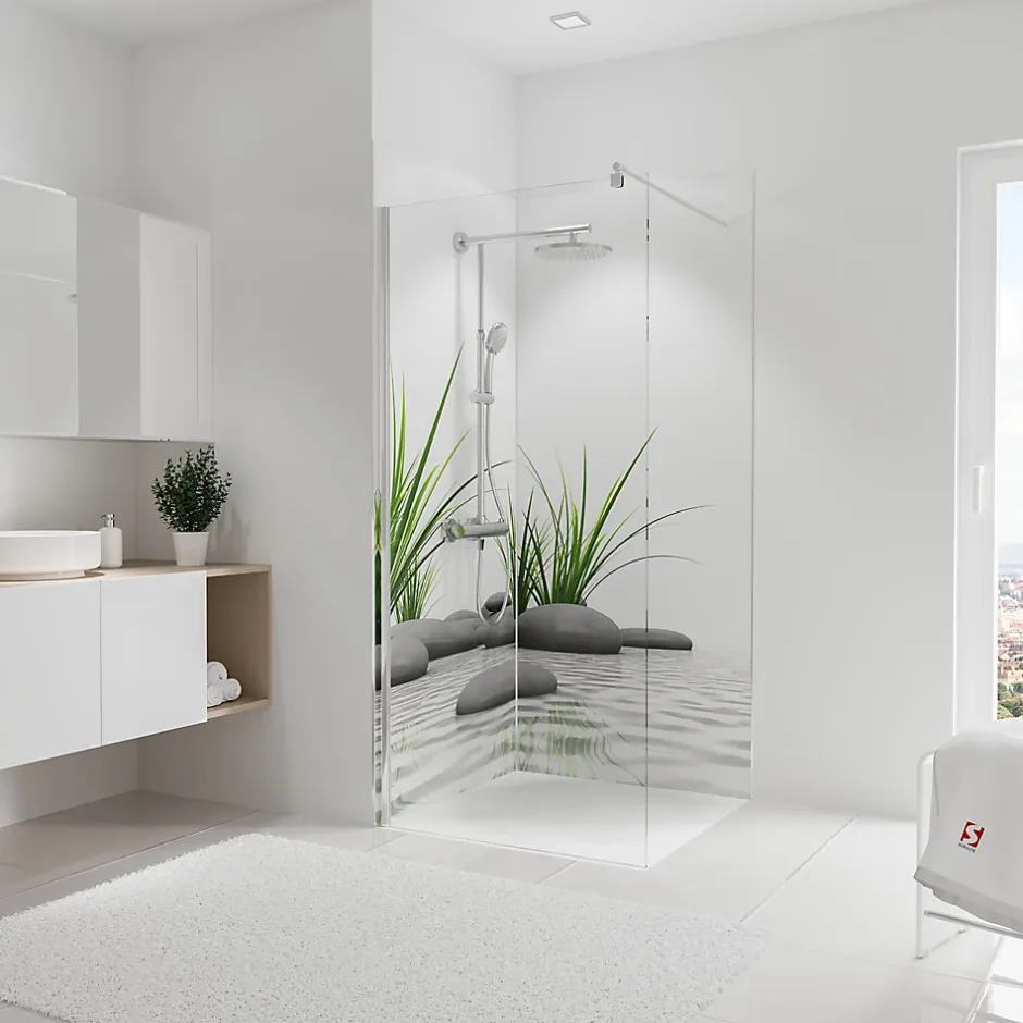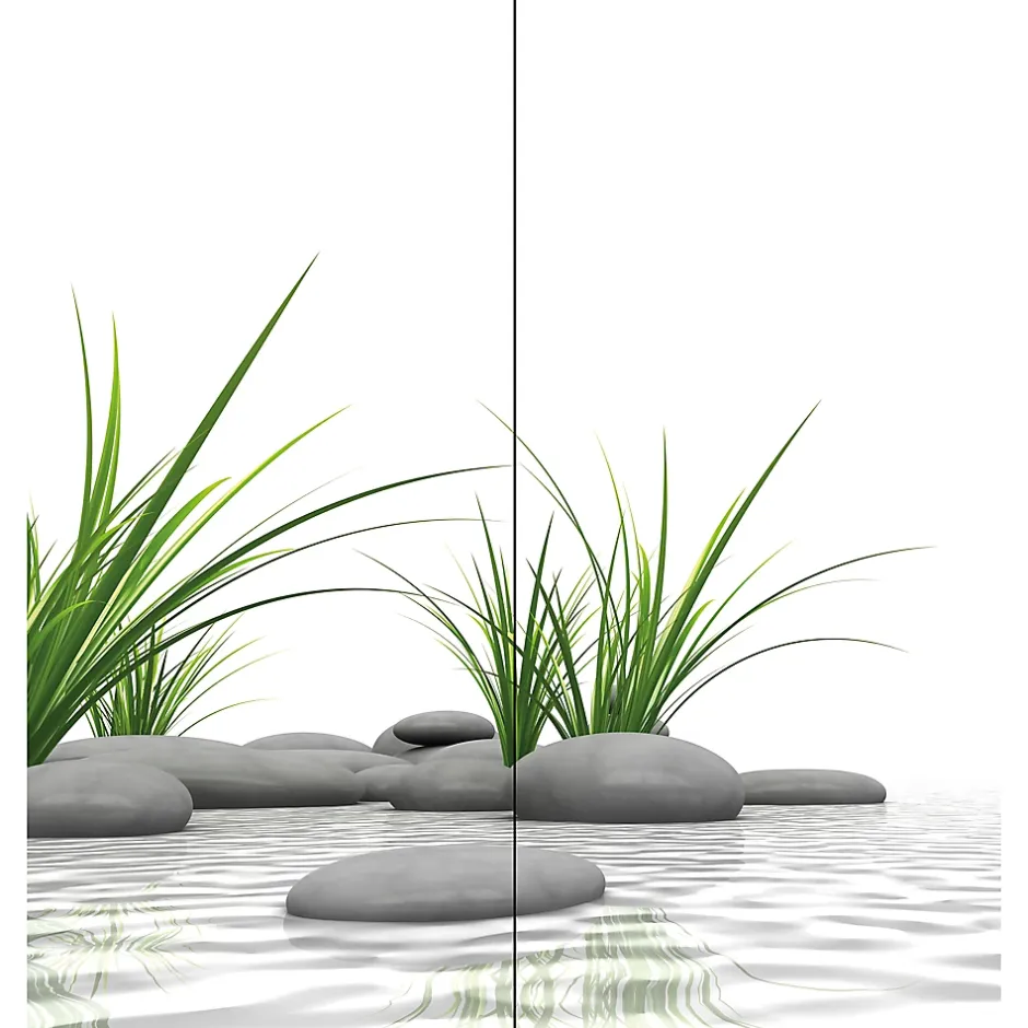 Lot de 2 panneaux muraux salle de bains 90 x 210 cm Schulte, pierres zen et herbes en angle