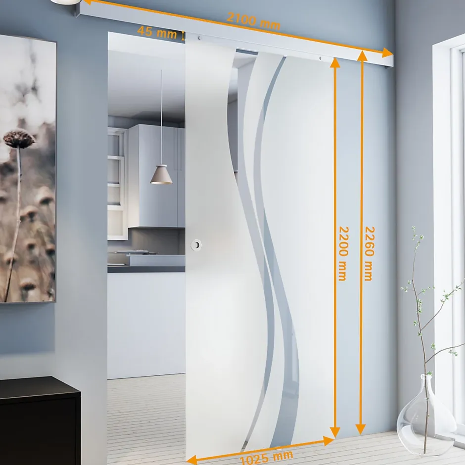 Élément décoratif et moderne à part entière, une porte intérieure coulissante sépare les pièces et crée une ambiance cocooning. Que ce soit à la maison ou au bureau, elle se pose partout, peu importe la taille et le style de votre espace. AVANTAGES PRODUIT :Facile : réaménager, agencer et décorer sans gros travaux de rénovationLiberté de mouvement: circulation plus fluide entre les pièces. Facilite les déplacements des personnes à mobilité réduiteSéparation de pièce: limite la propagation des odeurs de cuisine, divise une grande pièce en deuxÉconomie d’énergie: maintient la température dans les piècesSécurité: fini la porte qui claque lors d’un courant d’airParoi vitrée: laisse passer la lumière et donne une sensation de volumeMontage: possible au-dessus d’un encadrement de porte déjà existant grâce à une cale d’épaisseur incluse dans la livraisonSystème coulissant: particulièrement silencieuxSystème coulissant sur roulement à billes: ne nécessite aucun entretienPoignées autocollantes et ergonomiques : se pose à la hauteur souhaitéeDÉTAILS TECHNIQUES :Porte coulissante d’intérieur en verre noir, rail en aluminium inoxydable, 1 vantailSystème en applique peu encombrant. Coulisse devant le murParoi en verre de sécurité de 8 mm d’épaisseur, bords du verre polisLargeur passage maximal : jusqu’à 895 mmHauteur passage maximal : jusqu’à 2147 mmKit de montage avec des vis et des chevilles, poignées, guide au sol, rail et cache rail en aluminium inclusLargeur rail : 2100 mmHauteur rail : 36,5 mmProfondeur rail : 34 mmHauteur cache rail : 60 mmLa cale d’épaisseur en aluminium inclus comble un écart allant jusqu’à 16 mm lorsqu’il y a un encadrement de porte déjà existant ou une plintheIntervalle porte / mur : 13 mm (sans cale d’épaisseur) – 29 mm (avec cale d’épaisseur)Chariot avec roulement à billesPoignées à monter à gauche ou à droitePorte avec trous de montageButée d’arrêt double Softclose pour une fermeture tout en douceur