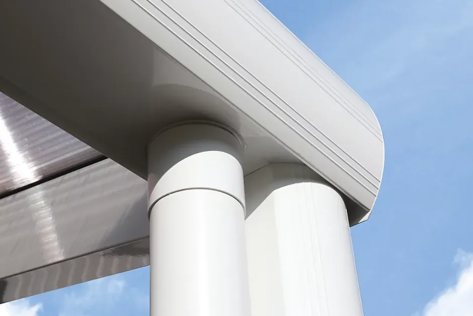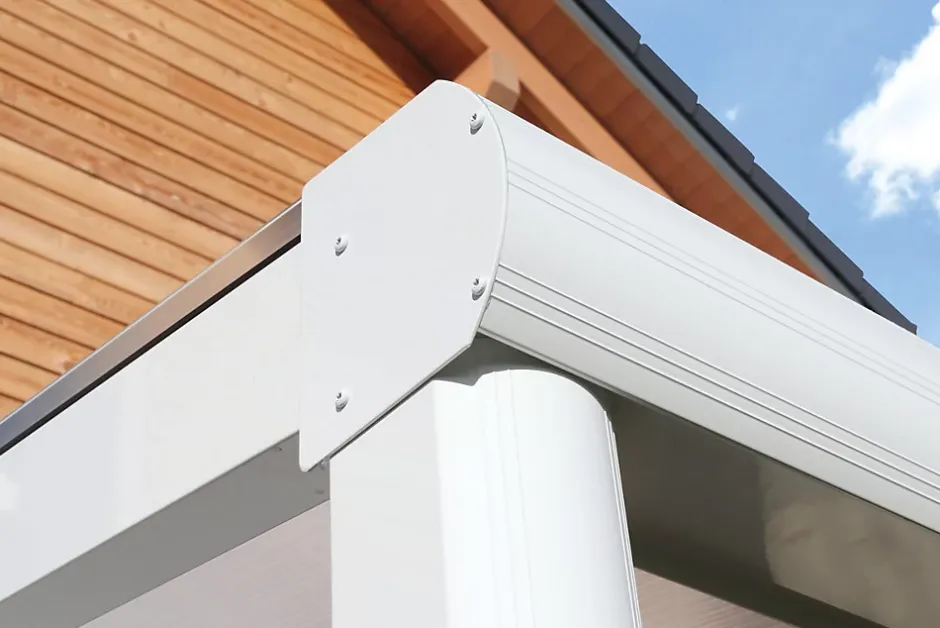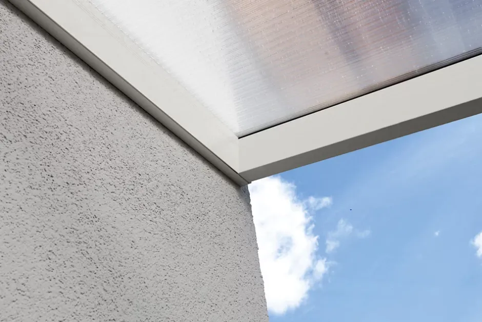 Auvent SKAN HOLZ « Greifswald »• Dimensions extérieures : 216 x 135 cm• Structure d’excellente qualité en aluminium, revêtement poudré en blanc (RAL 9016)• Poteaux 11 x 11 cm, arrondi à l’avant, comprenant des platines de fixation• Design moderne aux lignes profilées marquantes• Gouttière intégrée à la panne• L’écoulement se fait par un tuyau de descente fourni• Système intégré pour fixation murale• Couverture de toit en plaques alvéolaires de polycarbonate d’une épaisseur de 10 mm, clair• Livraison sans matériel de fixation muraleStructureLe kit de construction haut de gamme, en aluminium revêtu par poudrage, est équipé de poteaux de 11 x 11 cm, arrondis à l’avant. La structure stable et robuste adopte un design moderne avec des lignes de profilés nettes.Une gouttière est déjà intégrée à la panne. L’évacuation de l’eau peut se faire, au choix, dans le poteau ou le long du poteau. Le raccord mural est déjà intégré dans le profilé de la paroi.Couverture de toitLa couverture de toit se compose de panneaux alvéolaires en polycarbonate stables de 16 mm d’épaisseur. Leur face supérieure réfléchit les rayons UV. Ils sont fixés au moyen de profilés d’aluminium de haute qualité dotés de joints à lèvre en EPDM.AncrageLe kit comprend des platines de fixation en acier plat galvanisé et des chevilles pour la fixation sur les fondations à réaliser par le client. Ce système garantit un assemblage parfait sur le support.