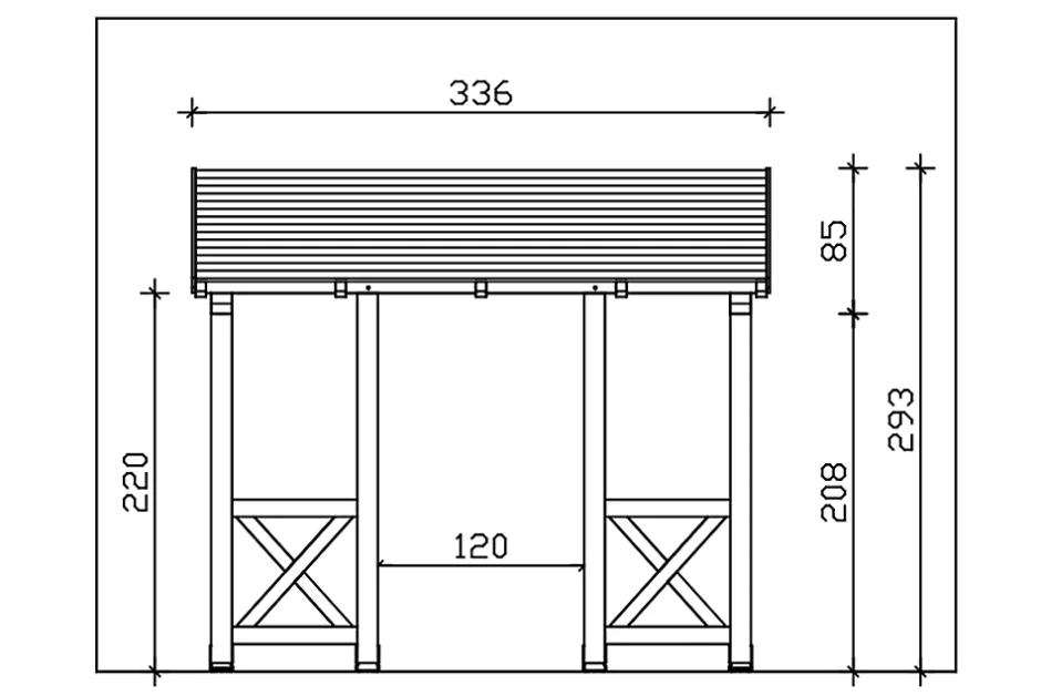 Auvent de porte d’entrée SKAN HOLZ « Paderborn 5 »• Dimensions extérieures : 336 x 156 cm• Structure massive en bois massif abouté d’excellente qualité (BMA épicéa)• Peinture couleur noyer• Montants 12 x 12 cm• Pannes 12 x 12 cm• Chevrons 6 x 12 cm• Véritables assemblages à tenons et mortaises• Chevrons entaillés• Support à visser compris• voligeage de 20 mm• Bardeaux disponibles en accessoires• Livraison sans matériel de fixation muraleStructureLa structure est réalisée en bois massif de construction (KVH). On entend par KVH du bois d’épicéa massif collé sans fin et séché mécaniquement. Chaque section de bois est séchée, scannée pour identifier les défauts, triée et collée de manière résistante aux intempéries par dents collées. Ses fissures, ses branches et de petits nœuds reflètent le caractère des matériaux utilisés.