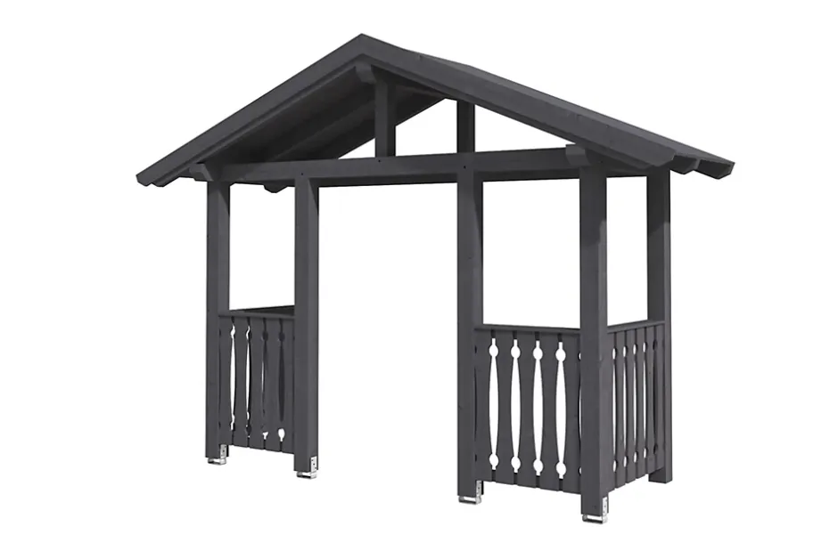 Traitement coloréLes pièces ayant bénéficié d’un traitement coloré ont été traitées à l’aide d’une lasure ou d’une peinture haut de gamme. Cela protège le bois du bleuissement, des dégâts dus aux rayons UV, diminue la dilatation et la rétractation du bois, tout en laissant tout de même apparaître sa structure. Les pièces sont baignées de lasure deux fois en usine. L’excédent est ensuite éliminé par brossage.Vous pouvez commencer le montage dès la livraison en éliminant l’étape laborieuse de l’application de primaire et de peinture. Chaque kit est accompagné d’un pot de couleur ou de peinture destiné aux réparations. Cette quantité vous suffira pour traiter au moins deux fois les dégâts et les emplacements de coupe et de vissage nécessaires au montage.Si vous souhaitez améliorer encore l’aspect des surfaces, poncez légèrement les surfaces visibles après le montage et appliquez-y une couche de lasure ou de peinture de bonne qualité. Des traces de dépôts peuvent être présentes sur les pièces traitées sur toutes leurs faces compte tenu du procédé technique d’application.Couverture de toitLe toit est livré avec des planches de toit de 20 mm d’épaisseur à couvrir ensuite des bardeaux (à commander en option).AncrageLe kit comprend des platines de fixation en acier plat galvanisé et des chevilles pour la fixation sur les fondations à réaliser par le client. Ce système garantit un assemblage parfait sur le support.