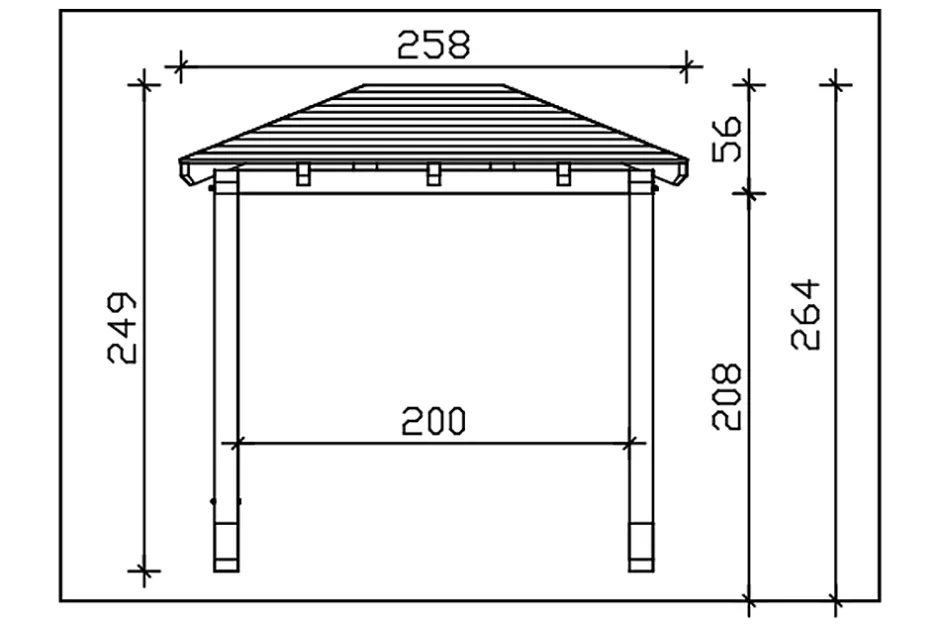 Auvent de porte d’entrée SKAN HOLZ « Wismar 2 »• Dimensions extérieures : 258 x 126 cm• Structure massive en bois massif abouté d’excellente qualité (BMA épicéa)• Peinture couleur chêne clair• Montants 12 x 12 cm• Pannes 12 x 12 cm• Chevrons 6 x 12 cm• Véritables assemblages à tenons et mortaises• Chevrons entaillés• Arêtiers chanfreinés• voligeage de 20 mm• Bardeaux disponibles en accessoires• Livraison sans matériel de fixation muraleStructureLa structure est réalisée en bois massif de construction (KVH). On entend par KVH du bois d’épicéa massif collé sans fin et séché mécaniquement. Chaque section de bois est séchée, scannée pour identifier les défauts, triée et collée de manière résistante aux intempéries par dents collées. Ses fissures, ses branches et de petits nœuds reflètent le caractère des matériaux utilisés.
