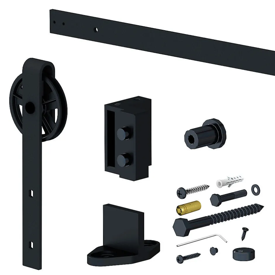 Système type Barn Door pour 1 porte de séparation Kit comprenant le rail et les accessoires pour une pose facile Fixation : en applique Poids max. de la porte : 100 kg Longueur max. de la porte : 950 mm Epaisseur de la porte : 35-45 mm Longueur du rail : 1,90 m Diamètre des roues : 120 mm Matière des roues : polymère Couleur : noir mat Garantie : 5 ans Système coulissant SLID’UP 240 type Barn Door pour 1 porte de séparation – rail de 1,90 m – coulissant suspendu fixé en applique.Poids maximum de la porte : 100 kgLargeur maximum de la porte : 950 mmÉpaisseur de la porte : entre 35 et 45 mmLongueur du rail : 1,90 mDiamètre des roues : 120 mmMatière des roues : polymèreFixation : en appliqueCouleur : noir mat Attention : Porte non comprise dans le kit. Robuste, fiable et très esthétique, le système coulissant SLID’UP 240 type Barn Door pour porte de séparation vous assure un déplacement à la fois fluide et silencieux grâce aux montures sur roulements à billes de grande qualité.Ce système type « porte de grange » ou « porte d’atelier » est très facile à monter et vous permettra de positionner votre porte dans n’importe quelle position en toute simplicité.La gamme SLID’UP 240 s’inspire de la décoration industrielle moderne, où les éléments mécaniques sont visibles afin d’apporter une touche de singularité à votre intérieur. De plus, la surface noir mat est résistante à l’usure mécanique et à la poussière. Contenu du kit : – 1 rail de 1,90 m- 2 montures sur roulements à billes- 2 butées- 1 guide bas- 1 lot de visserie Options : SU5379 : amortisseur ferme-porte <a