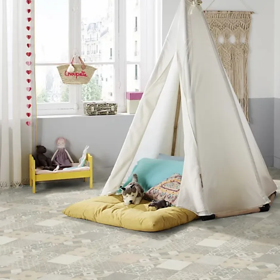 Marque : Tarkett – Iconik Life Zaragoza Tile PowderSol vinyle au meilleur rapport qualité/prix. Un sol confortable, offrant une bonne insonorisation et un entretien facile avec son traitement de surface. Taille d’un carreau : 17,5 x 17,5 cm • Faibles émissions de COV • CHAUFFAGE PAR LE SOL : Oui (27°C max.) • CLASSE COV : A+ • CLASSEMENT EUROPÉEN : Usage Domestique – Classe 22 : Trafic moyen (chambre, salon sans accès sur l’extérieur, hall d’entrée d’appartement, couloir, salle de bain), Usage Domestique – Classe 22+ : Trafic moyen/fort (chambre, salon, hall d’entrée, salle à manger, couloir, salle de bain) • CLASSEMENT FEU : Cfl-s1 (ancienne norme M3) • CLASSE FORMALDÉHYDE : E1 • COMPOSITION : Base de polychlorure de vinyle expansé (ISO 26986) • COMPORTEMENT ÉLECTROSTATIQUE : 2Kv (EN 1815) • CONTENU RECYCLÉ : 20% • ÉPAISSEUR COUCHE D’USURE : 0,22 mm • ÉPAISSEUR TOTALE : 2,6 mm • ISOLATION PHONIQUE : 20 dB • POIDS TOTAL : 1475 g/m² • RÉSISTANCE AU POINÇONNEMENT : 0,17 mm • RECYCLABLE : Oui • RÉSISTANCE THERMIQUE : 0,04 m² K/W • SOLIDITÉ À LA LUMIÈRE : 6 • RÉSISTANCE AU GLISSEMENT : R9/R10 • RÉSISTANCE CHIMIQUE : Très bonne • STABILITÉ DIMENSIONNELLE : 0,2 % • TRAITEMENT DE SURFACE : Extreme Protection • Tolérance sur la largeur et la longueur : ±3% • IMPORTANT : Nuances de couleurs de bain sur nos sols PVC Merci de noter que nous ne pouvons pas garantir une même teinte de couleur sur nos différentes largeurs de rouleaux (2m, 3m ou 4m de large). Information à bien prendre en considération si vous souhaitez faire un raccord, dans une même pièce, à partir de 2 largeurs de rouleaux différentes.