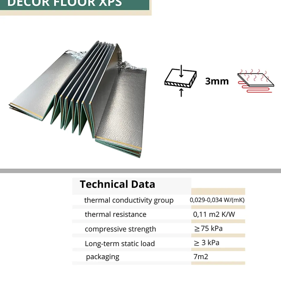 Sous-couche thermique et phonique en polystyrène extrudé XPS avec film PET. Idéale pour parquet ou stratifié. Résiste à la pression, réduit le bruit et les pertes de chaleur.