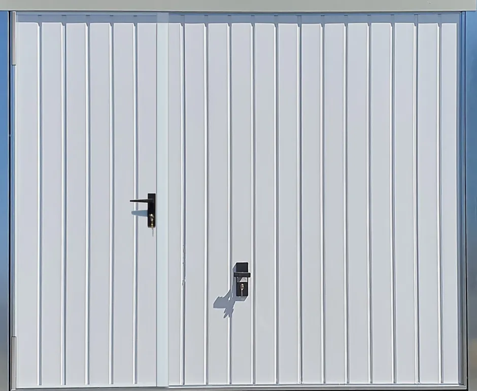 Livraison comprise : 10 à 22 jours ouvrés avec déchargement assuré par 2 chauffeurs.En France Métropolitaine uniquement, hors Corse et sous réserve d’un accès poids-lourd de 26 TonnesPorte de garage basculante manuelle avec portillon isolée 20mm.Cette porte basculante a un tablier fait en panneaux sandwich composés de 2 faces en acier pré-laqué de 0.45mm d’épaisseur, rempli de 20mm de mousse isolante en polyuréthane.Les panneaux de cette porte basculante ont un aspect extérieur Lisse avec rainures verticales couleur Blanc RAL 9016.La face intérieure des panneaux est blanche.Cette porte basculante à portillon est une solution abordable pour avoir un accès facile à votre garage.Pour installer cette porte en applique, vous avez besoin d’un espace de 65mm minimum à gauche et à droite de votre ouverture (ce que nous appelons les écoinçons) et d’une retombée de linteau de 70mm minimum.Le portillon est disposé à gauche vu de l’extérieur, a une largeur de 830mm et est équipé d’une serrure 1 point, pouvant être complétée en option par 2 verrous supplémentaires actionnables de l’intérieur. La porte de garage en elle-même est verrouillée avec 1 point de fixation central au sol.Cette porte est débordante en cours d’ouverture, d’un mètre environ au maximum. Elle ne doit donc pas être installée en bord de route ou de trottoir. En position ouverte, la porte ne déborde plus à l’extérieur du garage.Largeur d’ouverture : 240 cmHauteur d’ouverture : 200 cmLargeur hors-tout : 251,5 cmHauteur hors-tout : 207 cmCouleur : Blanc RAL 9016Type de panneau : Lisse avec rainures verticalesManoeuvre : Manuelle avec serrure 1 point au solD’autres dimensions et coloris sont également disponibles pour trouver la combinaison parfaite pour aller avec l’architecture de votre maison.