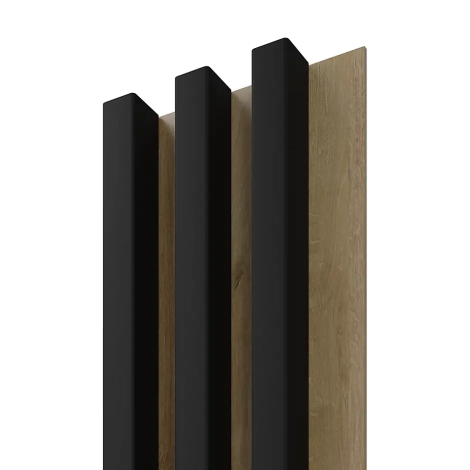 Tasseau décoratif lambris lamelles Linea Slim Black MDF noir et chêne 15 x 265 cm, ép. 30mm