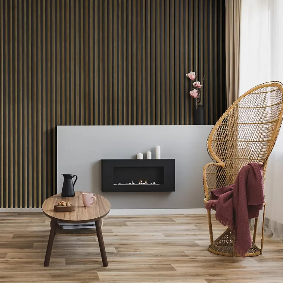 Les lamelles LINEA SLIM sont fabriquées en MDF épais, ce qui leur permet de fonctionner comme une isolation acoustique efficace. Simplicité et élégance raffinée – c’est ainsi que nous définissons LINEA SLIM BLACK. Les lamelles soulignent le caractère de l’intérieur le plus minimaliste, et leur design résistera à l’épreuve du temps. La combinaison contrastée des lamelles noires et du chêne confère un aspect extraordinaire au mur.