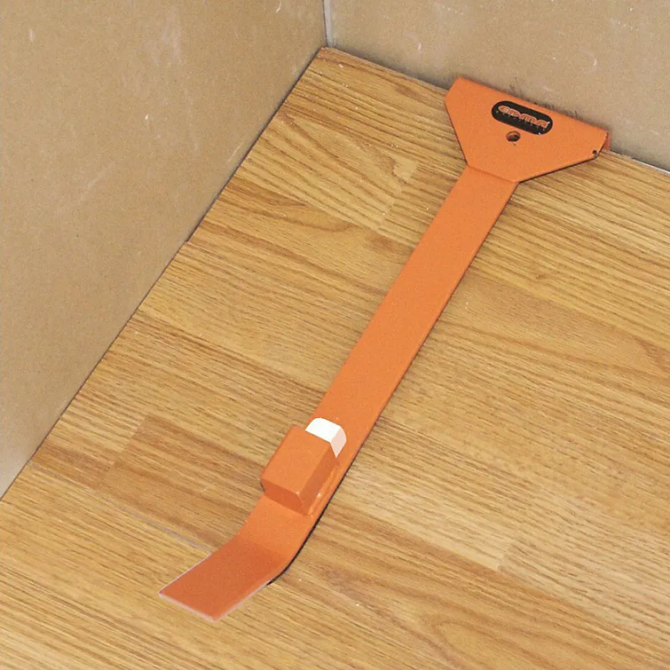 Système pied de biche intégré.Platine large pour tirage parfait.Revêtu de feutrine pour éviter les rayures sur les lattes déjà assemblées.Pour sols stratifiés clipsables et emboîtables.