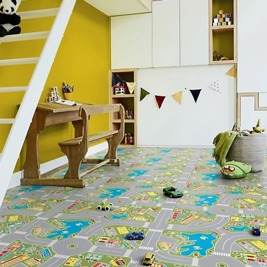 Marque : Tarkett – Iconik Confort Macadam GreenTransformez la chambre de votre enfant en une salle de jeux de rêve !Extreme Protection : Couche de PUR renforcé rendant votre sol sept fois plus résistant qu’un PUR standard.Les sols PVC Lino répondent aux exigences les plus strictes en termes de qualité de fabrication, d’hygiène et de sécurité, ainsi que d’environnement.• CHAUFFAGE PAR LE SOL : Oui (27°C max)• CLASSE COV : A+• CLASSEMENT FORMALDÉHYDE : E1• CLASSEMENT EUROPÉEN : Classe 23 – Usage important : escaliers, entrée, cuisine, Classe 31 – Usage modéré : chambre d’hôtel, salle de conférence…• CLASSEMENT FEU : Cfl-s1• COMPORTEMENT ÉLECTROSTATIQUE : 2Kv (EN 1815)• ÉPAISSEUR COUCHE D’USURE : 0,25 mm• ÉPAISSEUR TOTALE : 3 mm• GARANTIE : 10 ans en usage résidentiel• ISOLATION PHONIQUE : 20 dB• POIDS TOTAL : 1840 g/m²• RÉSISTANCE THERMIQUE : 0,05 m² K/W• RECYCLABLE : Oui• SOLIDITÉ DES COULEURS : 6• RÉSISTANCE AU POINÇONNEMENT STATIQUE : 0,18 (meilleure valeur mesurée)• RÉSISTANCE AU GLISSEMENT : R10• RÉSISTANCE CHIMIQUE : Très bonne• TRAITEMENT DE SURFACE : Extreme Protection• STABILITÉ DIMENSIONNELLE : 0,40%• Tolérance sur la largeur et la longueur : ±3%IMPORTANT : Merci de noter que nous ne pouvons pas garantir une même teinte de couleur sur nos différentes largeurs de rouleaux (2m, 3m ou 4m de large), information à prendre en considération si vous souhaitez faire un raccord à partir de 2 largeurs de rouleaux différentes.