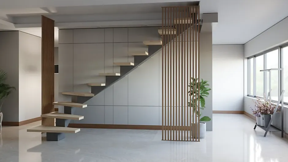 Une cloison esthétique permet de séparer la cuisine du séjour ou les escaliers de la pièce, conférant à la pièce un caractère exclusif. Les étagères permettent de placer des éléments de décoration : fleurs, photos de figurines, etc.