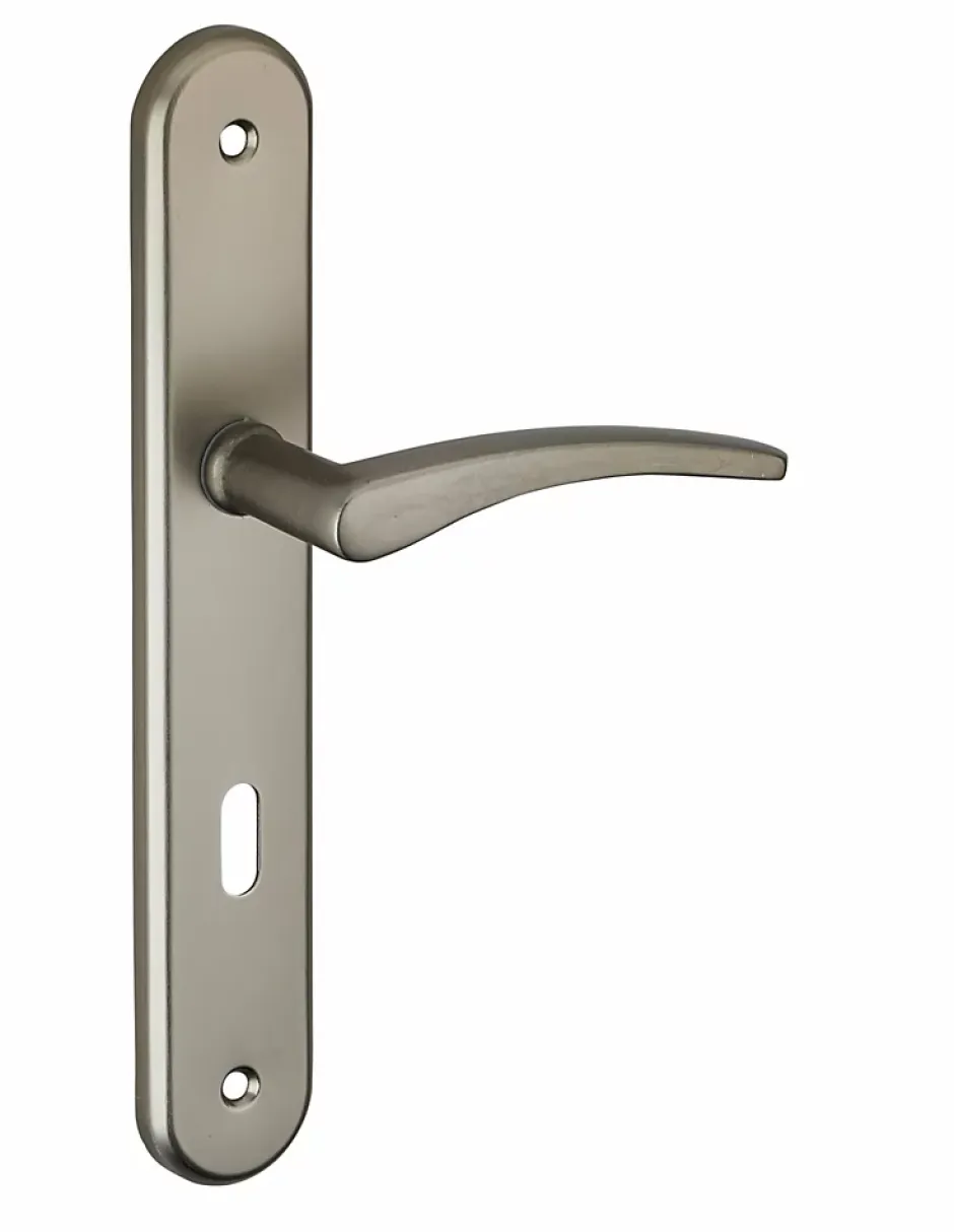 L’ensemble de poignées VestaEsthétiques et pratiques, les poignées Vesta, de la marque Thirard, permettent d’ouvrir et de refermer votre porte. L’ensemble est conçu en aluminium embouti, et de couleur nickelé satiné. Cet ensemble de poignées Vesta est destiné à être placé sur votre porte de chambre. Ce modèle est également disponible en de nombreuses déclinaisons (à condamnation, avec trou de cylindre, sans trou). Comment choisir sa poignée ?Deux dimensions permettent de prendre les mesures de sa poignée :L’entr’axes de fixation : Cette mesure se prend entre les deux visses qui permettent de fixer les plaques sur la porte.L’entr’axes : Cette mesure se prend entre le milieu carré (là où les béquilles passent) au milieu du trou de fonction (cylindre, entrée de clé ou encore condamnation).Et ensuite ? Rien de plus simple ! Vous n’avez besoin que d’un mètre et d’un tournevis. Démontez si besoin l’ensemble de poignées existant. Il vous faudra ensuite mesurer la taille du carré. Le carré est la barre qui permet de solidariser votre ensemble. Il existe des carrés de différentes tailles : 6, 7 ou 8mm. Il faut ensuite mesurer l’entr’axes, c’est-à-dire entre les deux vis de fixation. Il existe une autre mesure à prendre en compte si vous installez une poignée à trou de cylindre : l’entr’axes entre le trou destiné au cylindre et le carré de votre poignée. Vous pourrez ensuite faire l’acquisition de vos nouvelles poignées en accord avec votre décoration, votre porte et votre besoin. Installez l’ensemble sur votre porte et, si besoin, ajustez la longueur de la vis. Les vis sont sécables et prévues pour être recoupées. Revissez l’ensemble et vérifiez le fonctionnement de votre nouvelle paire de poignées.