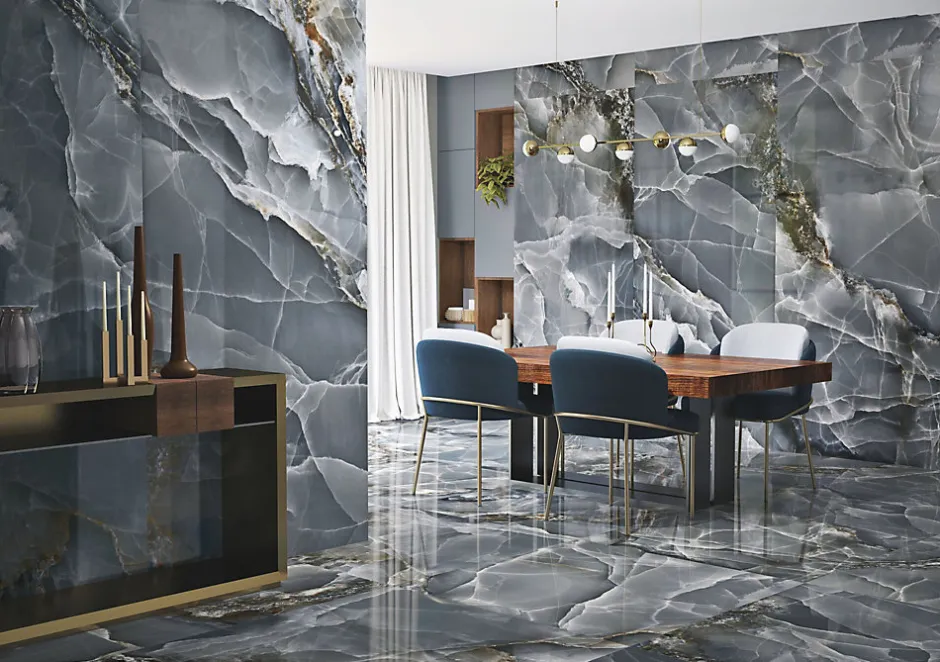 Plongez dans un océan de luxe avec le carrelage effet marbre bleu majestueux poli de 60 x 120 cm. Son imitation fidèle du marbre véritable allie harmonieusement l’élégance et la modernité. Parfait pour les espaces de vie ou les salles de bains. il confère une aura de sophistication à votre intérieur. évoquant un sentiment de grandeur et de sérénité.