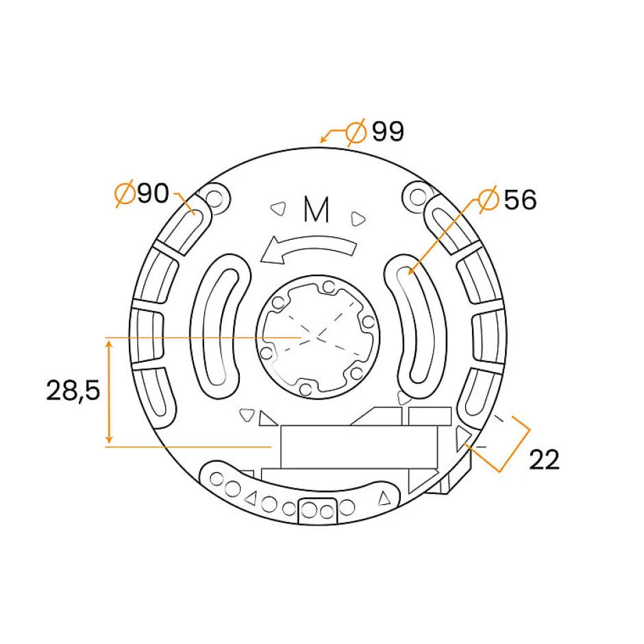 Caractéristiques techniques :- Epaisseur : 22 mm- Diamètre : 99mm- Matière : Fibre de verre | Polyamide- Pays de fabrication : France- Entraxe de fixation : 56mm | 90mm- Fin de course : Avec- Forme vers manivelle : 6p7- Gamme : Technivis- Forme vers axe : Crabot 27 (ZF)