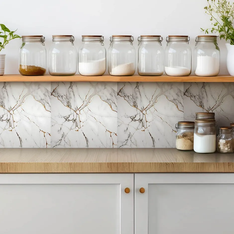 Tulup Carreaux vinyle 30x30 cm Marbre et or tendance 9 pcs
