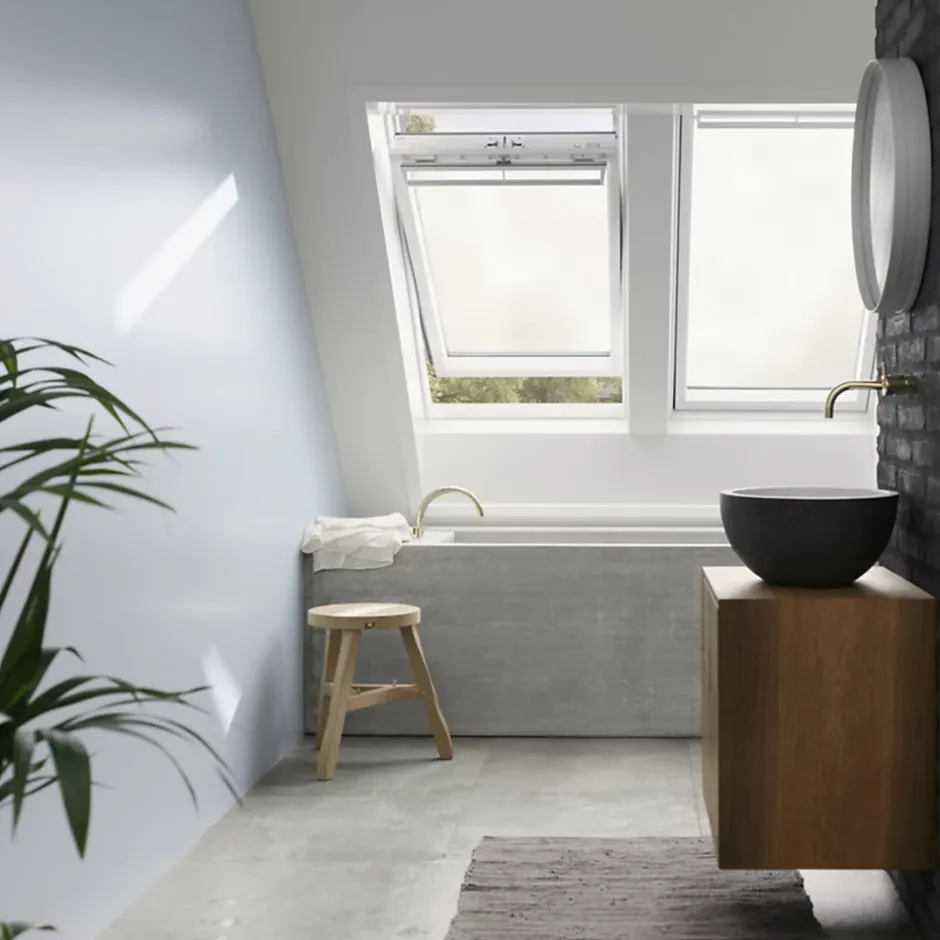 La fenêtre de toit à rotation VELUX GGU, sans entretien, reste aisément accessible même lorsqu’elle est placée au-dessus d’un canapé, d’un plan de travail ou d’une baignoire. La finition durable et résistante à l’humidité s’intègre harmonieusement à toutes les pièces et est idéale pour les pièces humides telles que les cuisines.