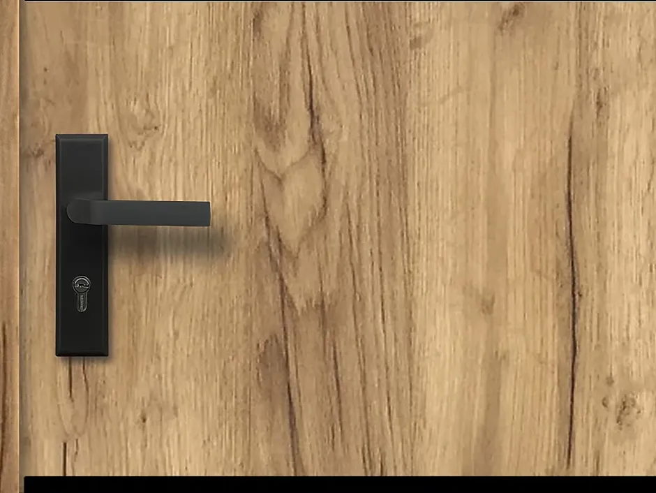 - Porte d’entrée en acier pleine et inox H207 x L100 cm effet bois, couleur chêne, poussant droit, finition mat acier sécurisant, résistant aux chocs, grande isolation thermique et acoustique, solide – NAXARA