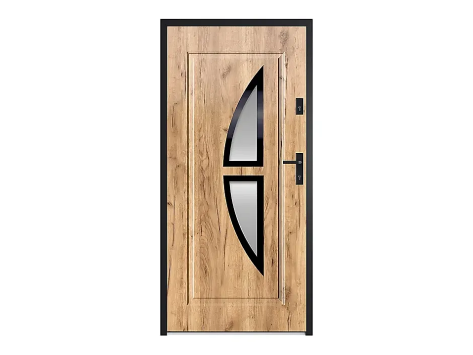 Vous souhaitez sécuriser votre maison tout en lui apportant luminosité et design ? Découvrez notre modèle de porte COVAS alliant sécurité grâce à une composition en acier et en verre trempé, et aspect déco avec deux vitres à la forme originale d’un croissant de lune.Caractéristiques Couleur (nuance) : Naturel clair Matière (précision) : Verre trempé, Acier Epaisseur verre : 52 mm Finition : Dépoli Type de porte : Porte simple Coefficient de résistance thermique : 1.5 Affaiblissement acoustique : 29 dB Equipement inclus : Poignée, Serrure à clé, Huisserie Nombre de jeux de clés : 6 Type de pose : en tunnel (ou en tableau) Sens d’ouverture : Poussant gauche Utilisation : Extérieur Gamme : Good for Planet Produit : Fabriqué en Europe Livré monté (sauf pieds et/ou poignées) Hauteur du seuil : 20 mm Epaisseur du dormant : 110 mm Epaisseur de l’ouvrant : 55 mm Nombre de points de serrure : 2 : Même couleur sur les deux faces de la porteDimensions Longueur : 95 cm Hauteur : 203.7 cm Profondeur : 9 cm Longueur hors tout : 100 cm Hauteur hors tout : 207 cm Profondeur hors tout : 11 cm Epaisseur de l’ouvrant : 55 mmLivraisonColisColis n°1 : Longueur 210 cm, Largeur 103 cm, Hauteur 13 cm, Poids 43 kg.