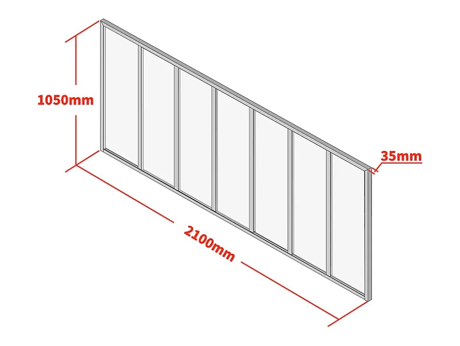 Vous rêvez d’un intérieur digne d’un magazine de décoration ou vous recherchez simplement une solution tendance pour séparer vos espaces ? A la fois esthétique et pratique, l’incontournable verrière d’intérieur BAYVIEW sera idéale pour différencier des espaces tout en conservant la luminosité de la pièce. Elle apporte élégance et cachet et diffuse la lumière de façon homogène. Vous aimeriez associer vos verrières BAYVIEW en angle pour créer un nouvel espace ou opter pour une installation en bout de mur plutôt qu’encastrée ? Nous vous proposons également dans la même gamme les poteaux d’angle et de terminaison BAYVIEW vous permettant de personnaliser votre espace selon vos envies.Caractéristiques Couleur (nuance) : Noir Matière (précision) : Verre trempé, Aluminium Epaisseur verre : 4 mm Epaisseur métal : 1 mm Finition : Dépoli, Mat Nombre de vitrages : 7 Utilisation : Intérieur Gamme : À la carte À monter soi-même : Poteau de terminaison non fourni : Installable sur supports en métal, bois, ciment et plâtre Epaisseur minimale du mur : 6 mm : Facile à assembler Code RAL : noir (9004)Dimensions Longueur : 210 cm Hauteur : 105 cm Profondeur : 3.5 cm Dimensions cornières : 23 x 35 mmLivraisonLors de la livraison, il est conseillé de vérifier que le bon nombre de colis a été livré.ColisColis n°1 : Longueur 109 cm, Largeur 37 cm, Hauteur 8 cm, Poids 22 kg. Colis n°2 : Longueur 216 cm, Largeur 15 cm, Hauteur 10 cm, Poids 4 kg.