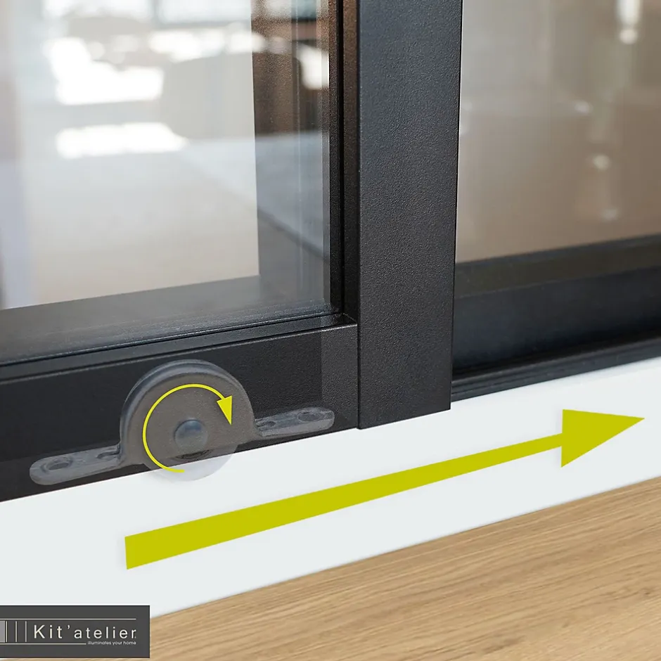 Verrière coulissante 6 carreaux transparents, coloris noir mat H108 x l.183cm