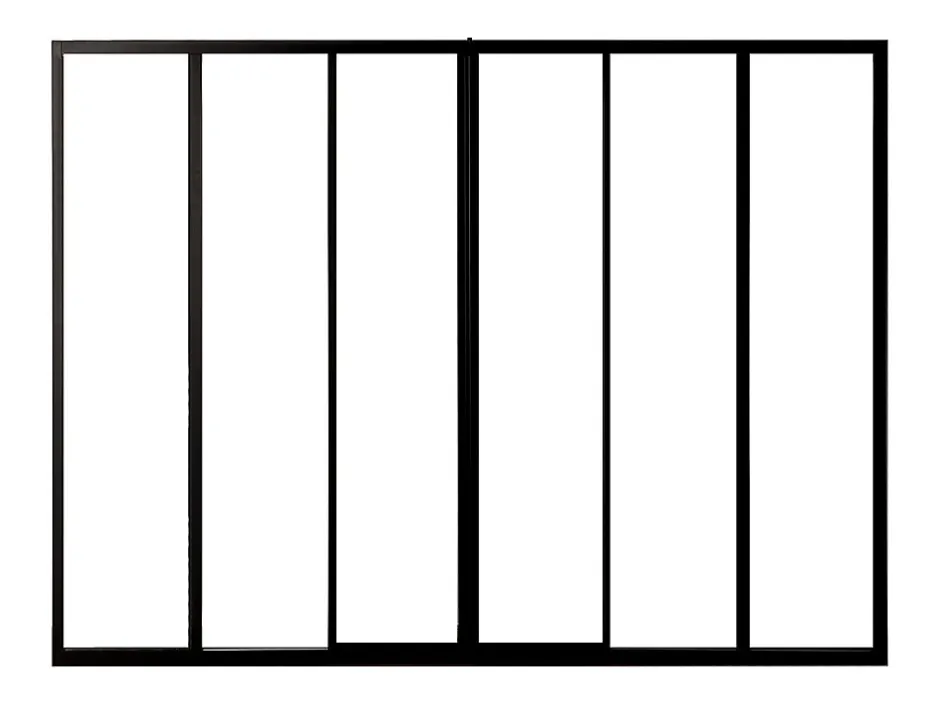 - Verrière qui coulisse en verre trempé et aluminium thermolaqué noir 180 sur 105 cm, aspect mat, avec rails, 6 vitrages, forme rectangulaire, style industriel, robuste, RAVENA