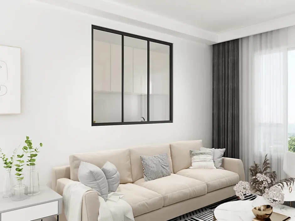 Verrière Factory Verrière - 3 Vitrages - L: 119cm H: 105cm - Acier Ultra Fin - Noir Mat (RAL 9005) - Livrée Montée