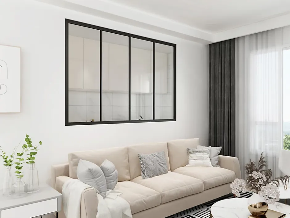Verrière Factory Verrière - 4 Vitrages - L: 157cm H: 105cm - Acier Ultra Fin - Noir Mat (RAL 9005) - Livrée Montée