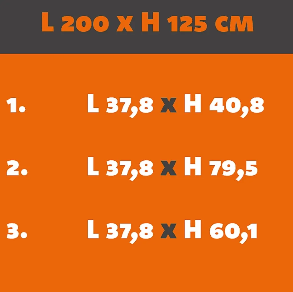 Largeur d’ouverture préconisée : 200,5 cm | Hauteur d’ouverture préconisée : 125,5 cm