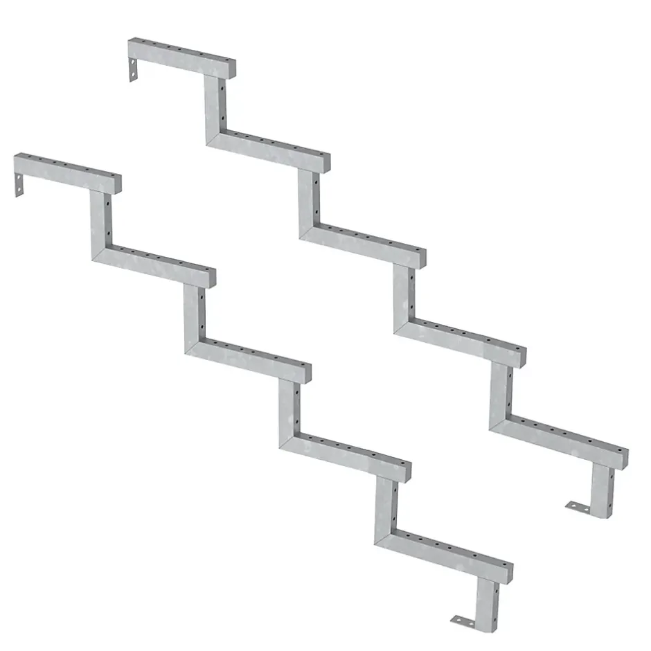 Pack 2 pièces – Limon acier galvanisé 5 marches – H 85cmVous souhaitez créer vos propres escaliers de terrasse avec des limons d’escaliers en acier galvanisé à chaud pour votre terrasse ou simplement pour compenser une différence de hauteur dans votre espace extérieur ?Apportez une touche esthétique moderne et industrielle à votre jardin. Alors vous pouvez utiliser nos nouveaux limons d’escalier très pratiques ! Les limons en acier sont disponibles dans les tailles de 2, 3, 4, 5, 6, 7 et 8 marches et le nombre nécessaire dépend de la largeur de vos escaliers. Placez les limons d’escalier à une distance maximale de 60 cm et fixez les planches en bois dessus. Pour les marches en bois, nous recommandons nos marches en bois autoclave classe 4.Épaisseur des limons : 3 cmProfondeur des marches : 28 cmHauteur des marches : 17 cmEn acier galvanisé à chaud2 marches : hauteur 34 cm, emprise au sol 53 cm3 marches : hauteur 51 cm, emprise au sol 78 cm4 marches : hauteur 68 cm, emprise au sol 103 cm5 marches : hauteur 85 cm, emprise au sol 128 cm6 marches : hauteur 102 cm, emprise au sol 153 cm7 marches : hauteur 119 cm, emprise au sol 178 cm8 marches : hauteur 136 cm, emprise au sol 203 cmLivré sans vis en acier ni planches en bois pour les marches.Les limons en acier galvanisé ne peuvent pas être fabriqués sur mesure.Nous recommandons le nombre suivant de limons d’escalier pour construire vos propres escaliers de terrasse :Largeur des marches en bois 60 à 100 cm : 2 limons en acierLargeur 120 à 160 cm : 3 limons en acierPour chaque largeur supplémentaire de 60 cm, un limon supplémentaire doit être placé.