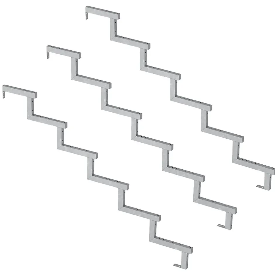 Pack 3 pièces – Limon acier galvanisé 6 marches – H 102cmVous souhaitez créer vos propres escaliers de terrasse avec des limons d’escaliers en acier galvanisé à chaud pour votre terrasse ou simplement pour compenser une différence de hauteur dans votre espace extérieur ?Apportez une touche esthétique moderne et industrielle à votre jardin. Alors vous pouvez utiliser nos nouveaux limons d’escalier très pratiques ! Les limons en acier sont disponibles dans les tailles de 2, 3, 4, 5, 6, 7 et 8 marches et le nombre nécessaire dépend de la largeur de vos escaliers. Placez les limons d’escalier à une distance maximale de 60 cm et fixez les planches en bois dessus. Pour les marches en bois, nous recommandons nos marches en bois autoclave classe 4.Épaisseur des limons : 3 cmProfondeur des marches : 28 cmHauteur des marches : 17 cmEn acier galvanisé à chaud2 marches : hauteur 34 cm, emprise au sol 53 cm3 marches : hauteur 51 cm, emprise au sol 78 cm4 marches : hauteur 68 cm, emprise au sol 103 cm5 marches : hauteur 85 cm, emprise au sol 128 cm6 marches : hauteur 102 cm, emprise au sol 153 cm7 marches : hauteur 119 cm, emprise au sol 178 cm8 marches : hauteur 136 cm, emprise au sol 203 cmLivré sans vis en acier ni planches en bois pour les marches.Les limons en acier galvanisé ne peuvent pas être fabriqués sur mesure.Nous recommandons le nombre suivant de limons d’escalier pour construire vos propres escaliers de terrasse :Largeur des marches en bois 60 à 100 cm : 2 limons en acierLargeur 120 à 160 cm : 3 limons en acierPour chaque largeur supplémentaire de 60 cm, un limon supplémentaire doit être placé.