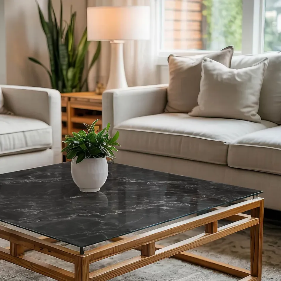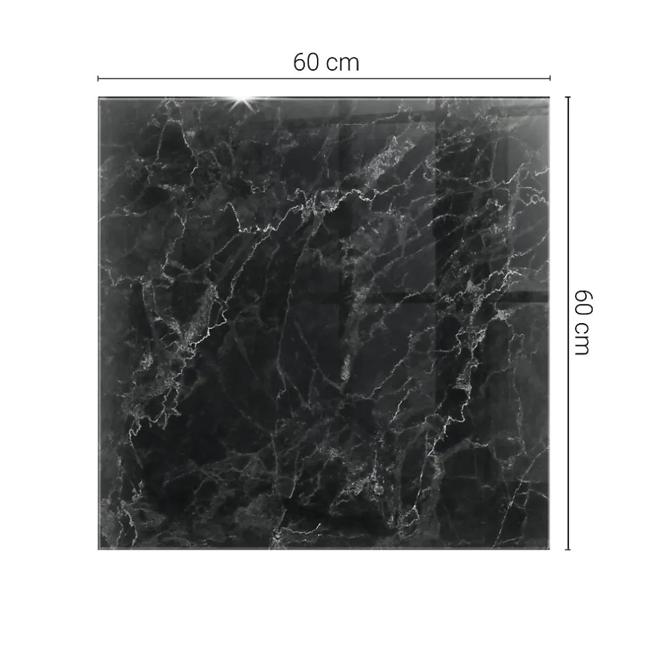 Wallfluent Dessus de table en verre trempé 60×60 cm Motif de marbre veiné