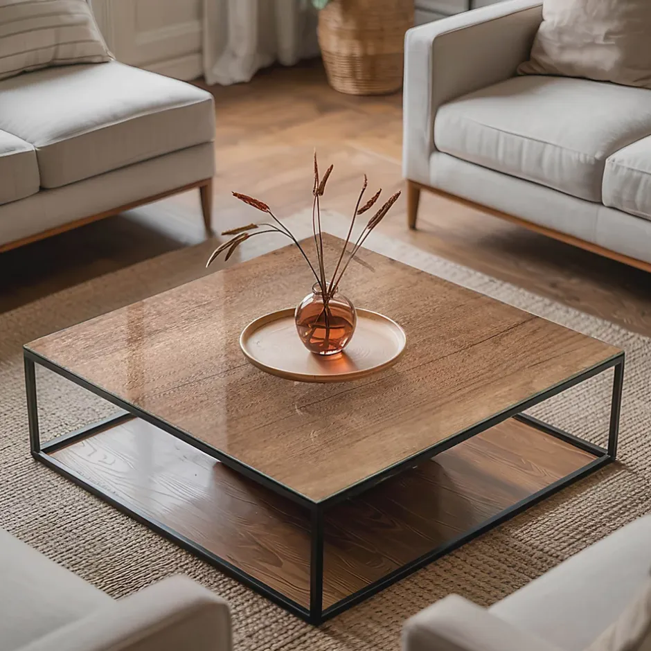 Wallfluent Dessus de table en verre trempé 60×60 cm Motif naturel du bois