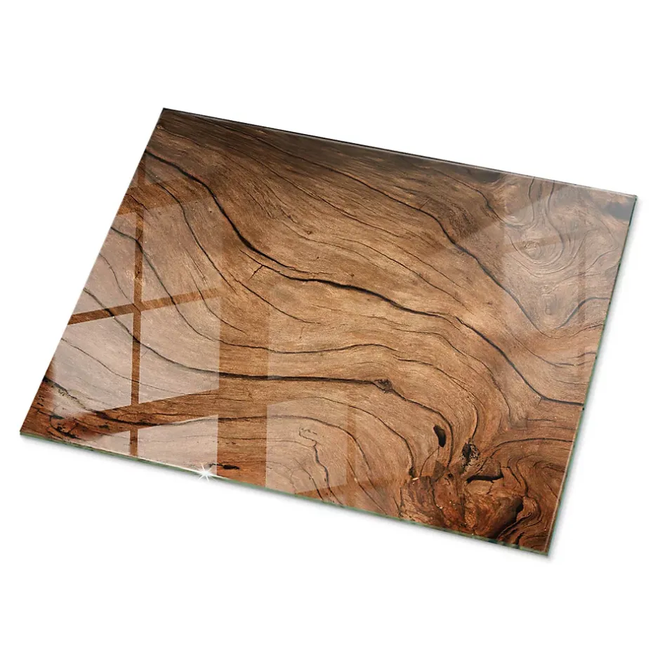 Wallfluent Dessus de table en verre trempé 80×60 cm Motif bois