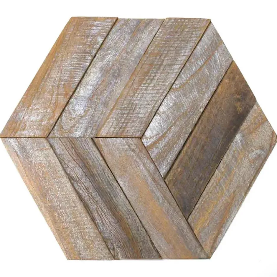 Craquez pour la chaleur du bois et offrez à votre pièce un cachet incomparable.Ces plaques de parement en teck recyclés permettent de créer un habillage mural unique en fonction de chaque intérieur et d’obtenir l’atmosphère que vous recherchez.De forme hexagonale, elles s’assemblent très facilement et se posent soit sur la surface totale du mur ou par petites touches déco pour une ambiance chic et moderne.Découvrez tous nos parements et revêtements ici.