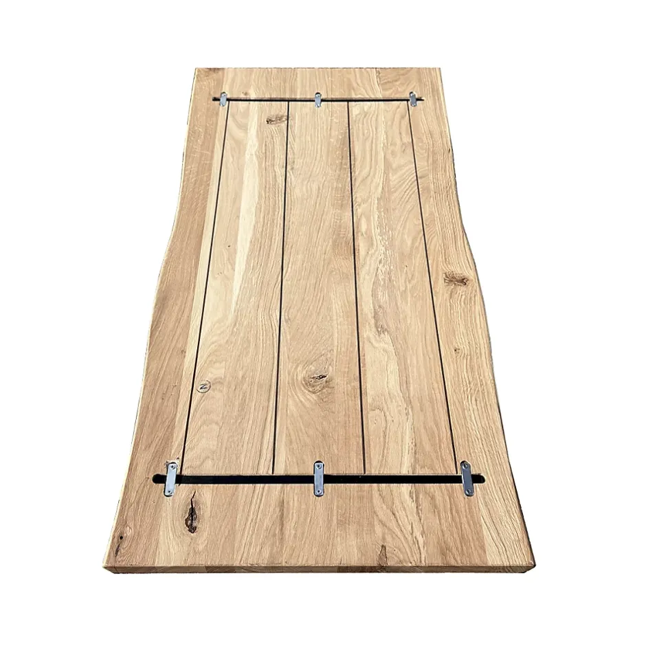 - Conseils de poseLe bois massif, étant un matériau vivant, peut légèrement bouger selon les conditions environnementales. Voici quelques conseils pour assurer une pose stable et durable :Préparation : Vérifiez que les meubles supports soient droits et laissez un espace de dilatation de 5 mm entre le panneau et les surfaces fixes.Fixation : Fixez solidement le panneau avec des équerres et vis tous les 20 cm.Espacement pour appareils : Prévoyez un espace de 25 mm minimum entre le panneau et les appareils tels que lave-vaisselle ou four pour éviter l’accumulation de chaleur et l’humidité sous le panneau.Protection pour les éléments encastrés : Si vous installez un évier encastré ou des plaques de cuisson, veillez à bien étanchéifier les joints en utilisant un silicone de qualité pour empêcher l’eau de pénétrer dans le bois.